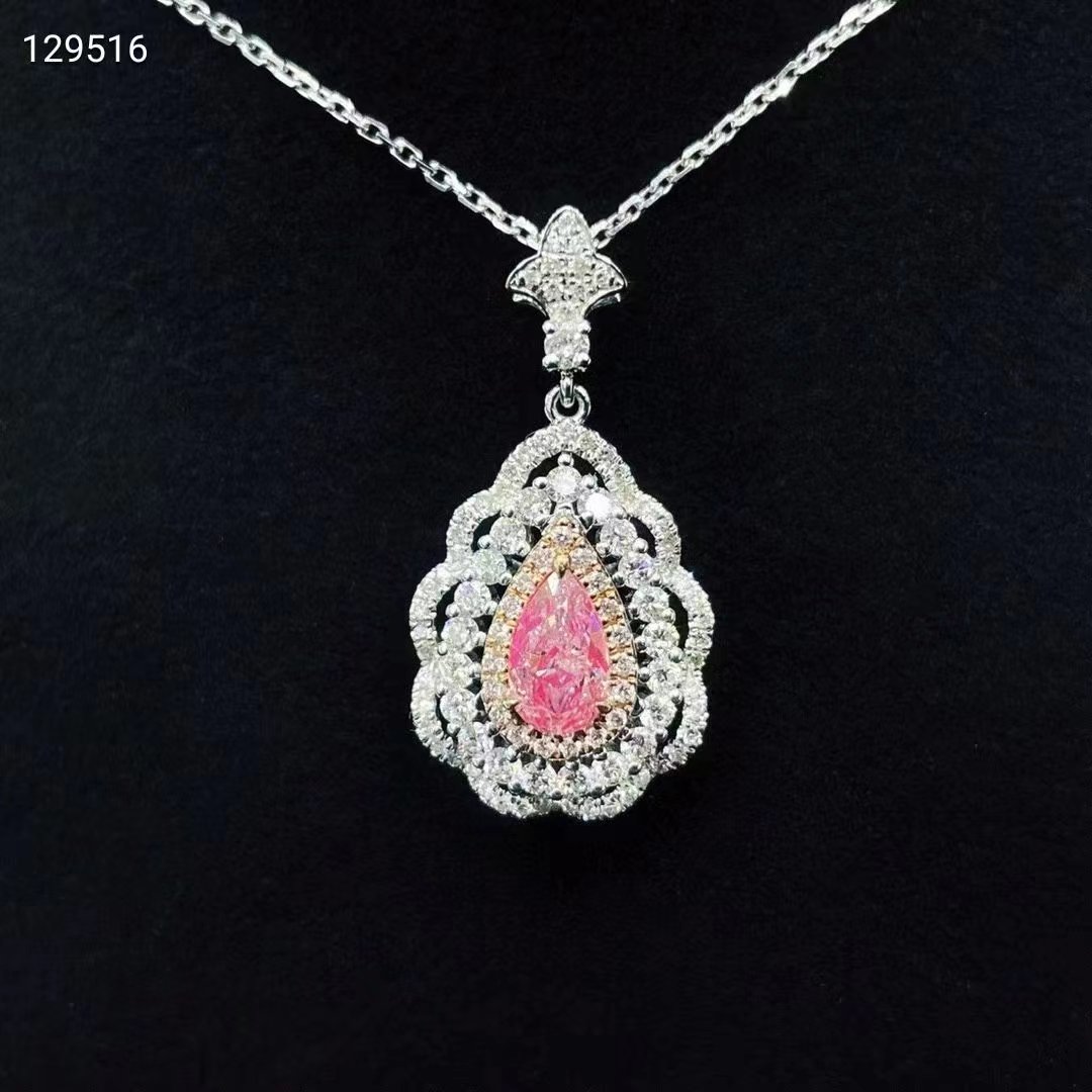 SGARIT Fine Jewelry Factory 18k White Gold 2.00 Carats Pear Cut VS Jewellery GRA Engagement Wedding Gift Cute fancy pink Natural Diamond necklace.