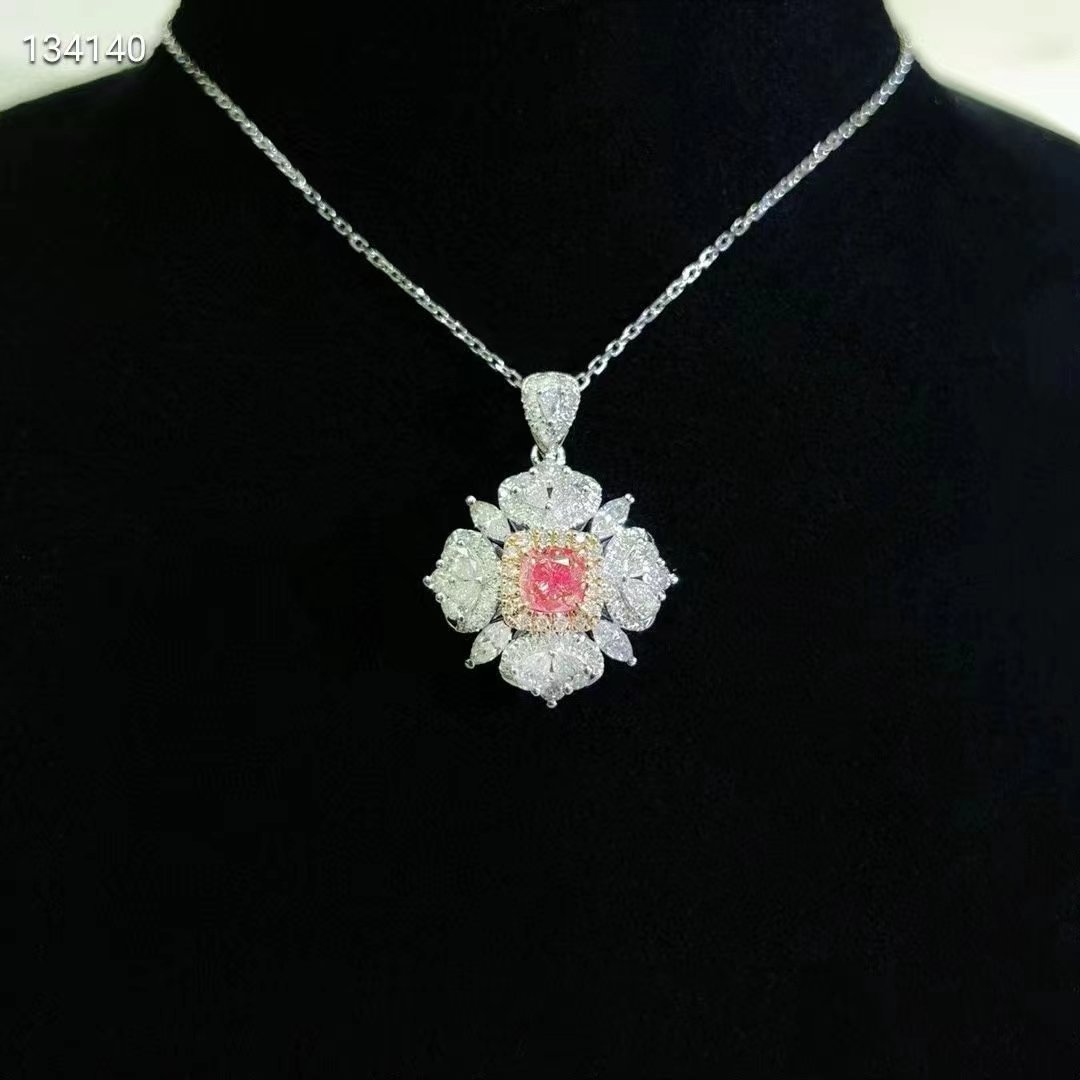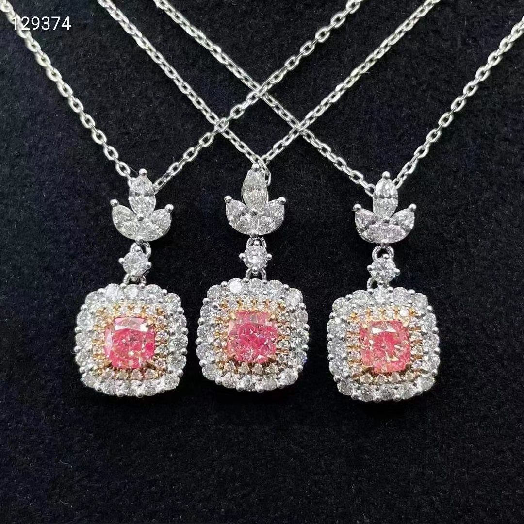 SGARIT Fine Jewelry Factory 18k White Gold 0.285 Carats Cushion Cut VVS Jewellery With International Certificate Noble atmosphere style Pink Natural Diamond necklace.