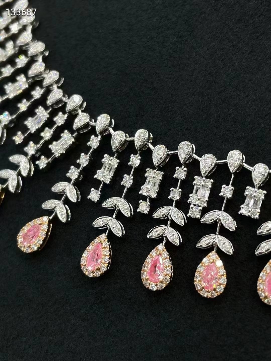 SGARIT Fine Jewelry Factory 18k White Gold 1.860 Carats Pear Cut VS Jewellery With International Certificate Romantic fancy pink Natural Diamond necklace.
