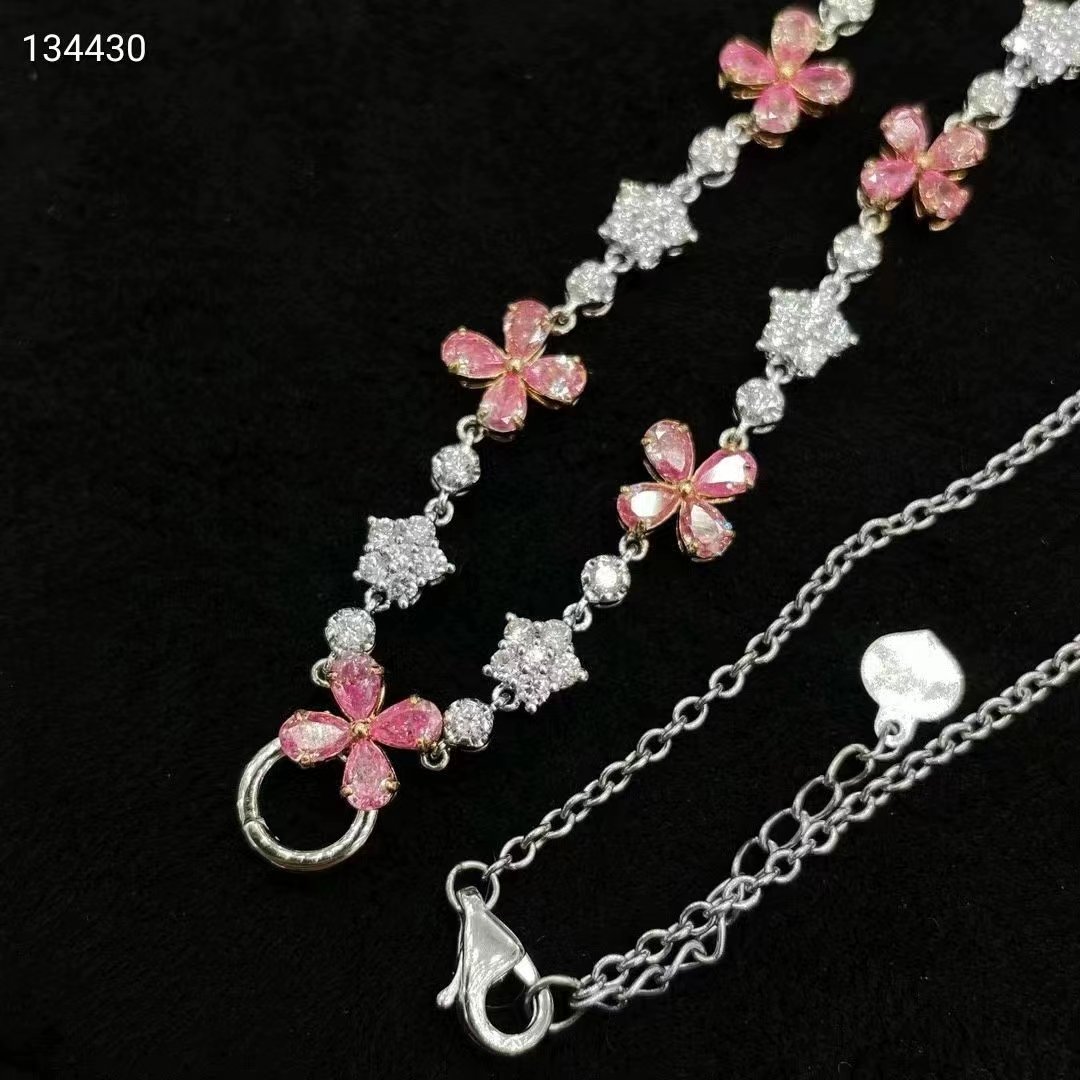 SGARIT Fine Jewelry Factory 18k White Gold 0.35 Carats Oval Cut VVS Jewellery With International Certificate Sweet style Pink Natural Diamond necklace.