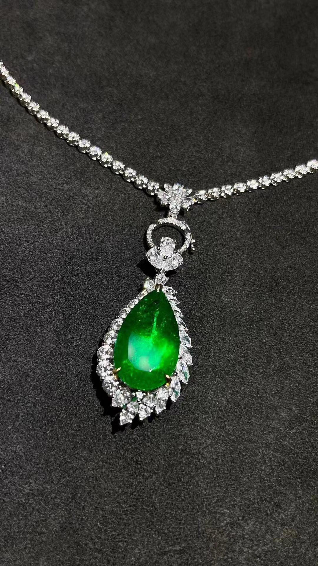 SGARIT Fine Jewelry Factory 18k White Gold 12.45 Carats Pear Cut VVS Jewellery With GUILD Authority Certificate elegant emerald Natural Gemstone pendant