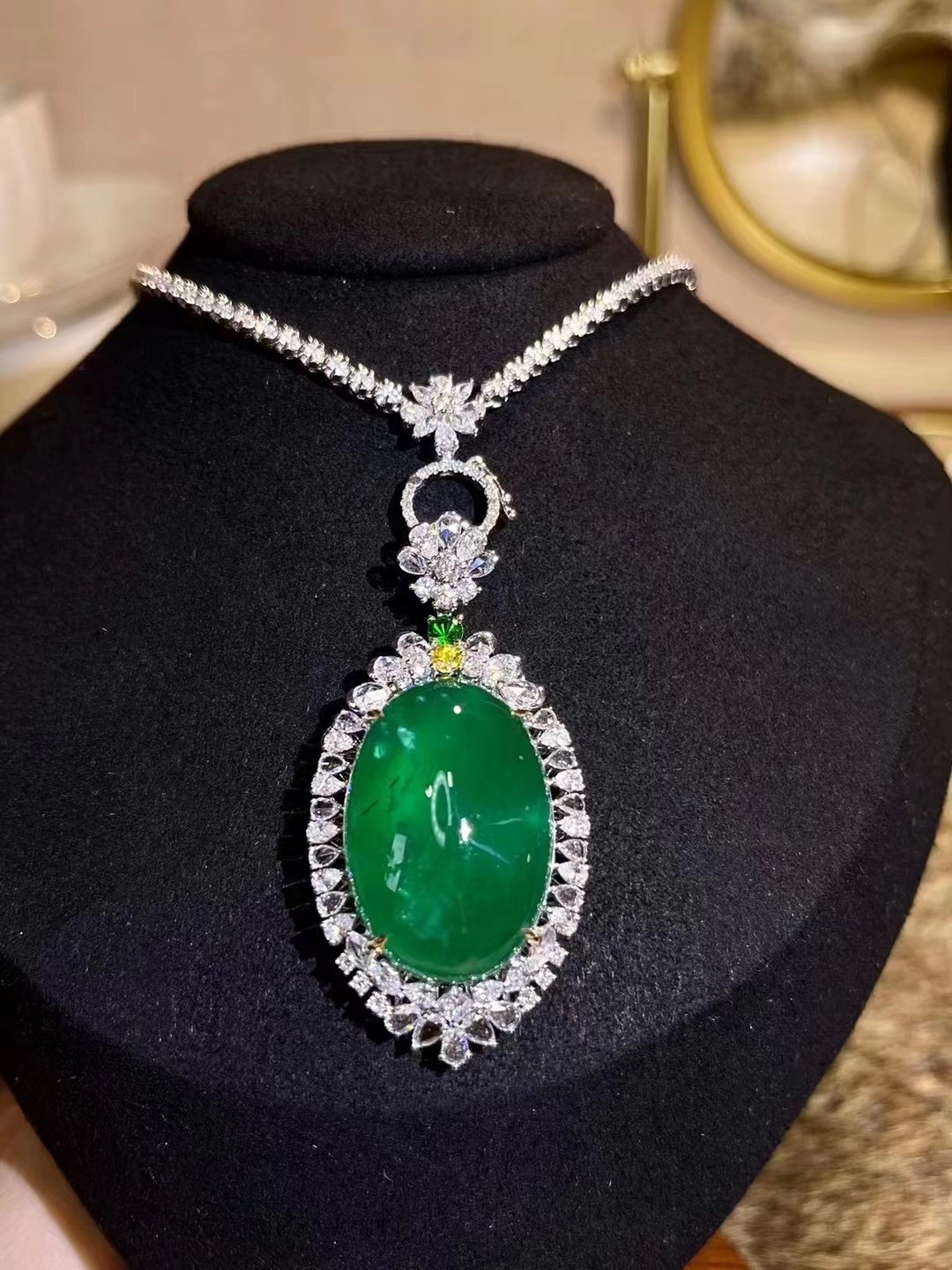 SGARIT Fine Jewelry Manufacturer 18k White Gold 2.04 Carats Oval Cut VVS Jewellery With Guild Certificate Sweet style Emerald Natural Gemstone Ring Pendant dual purpose.