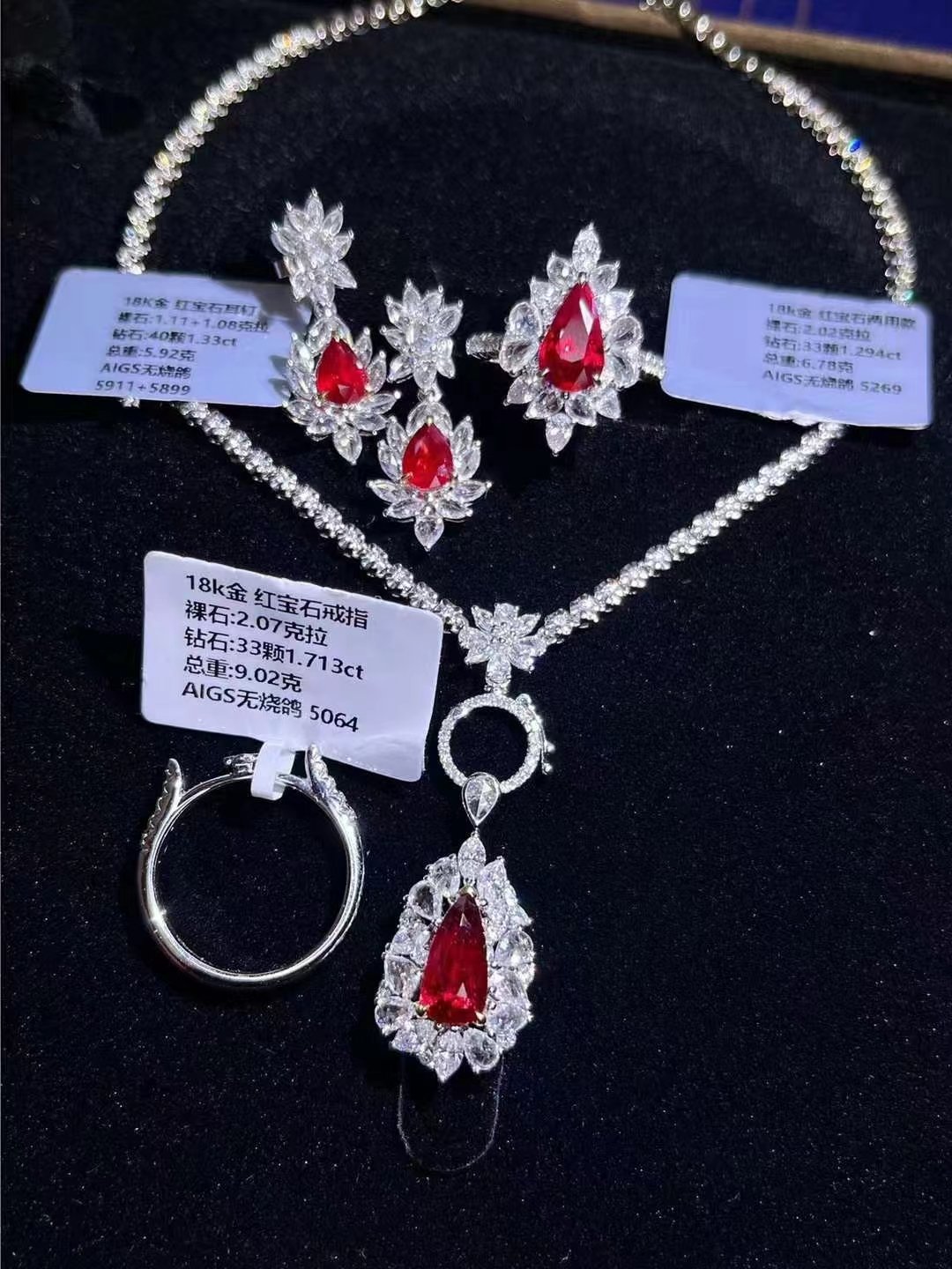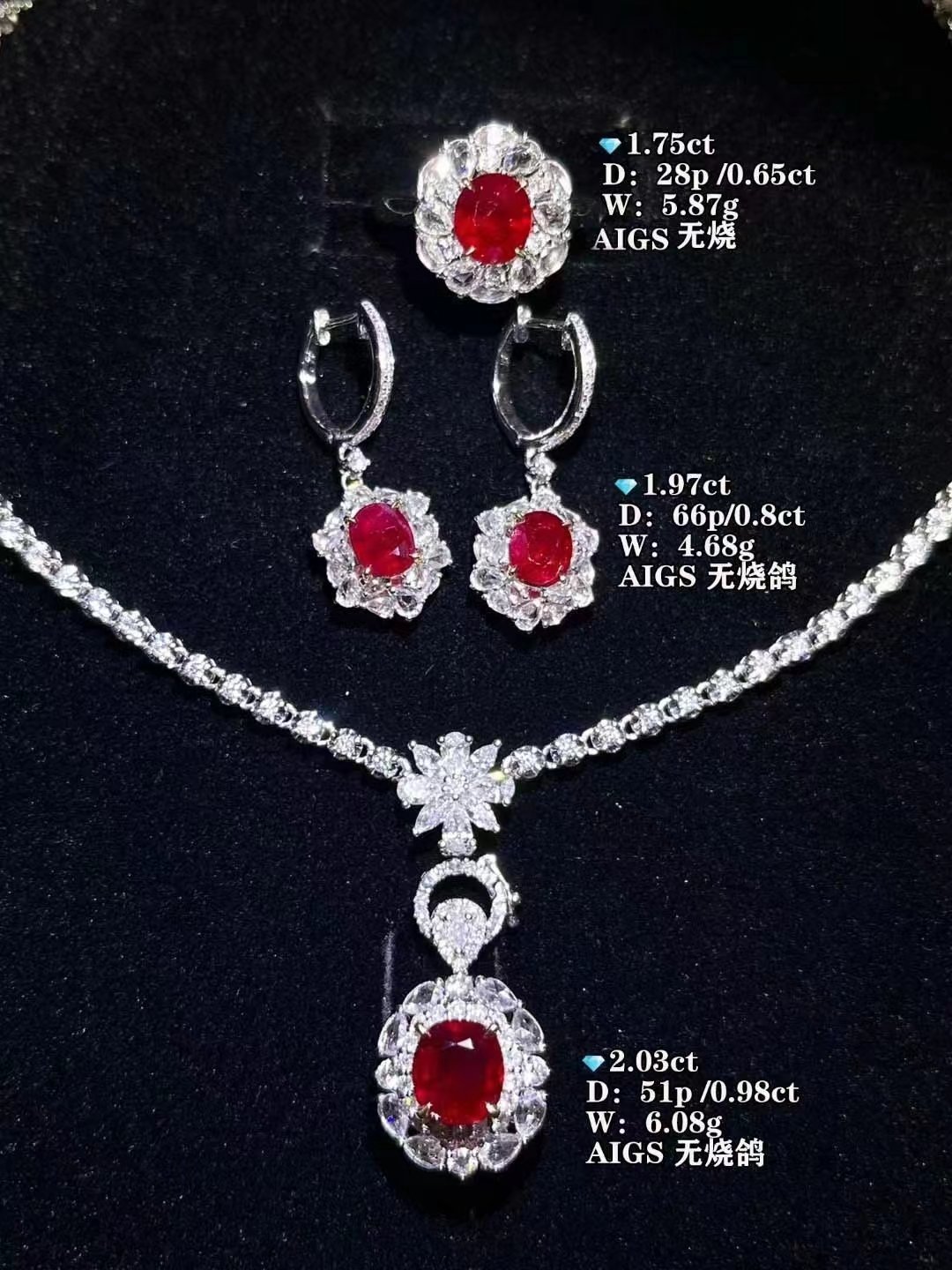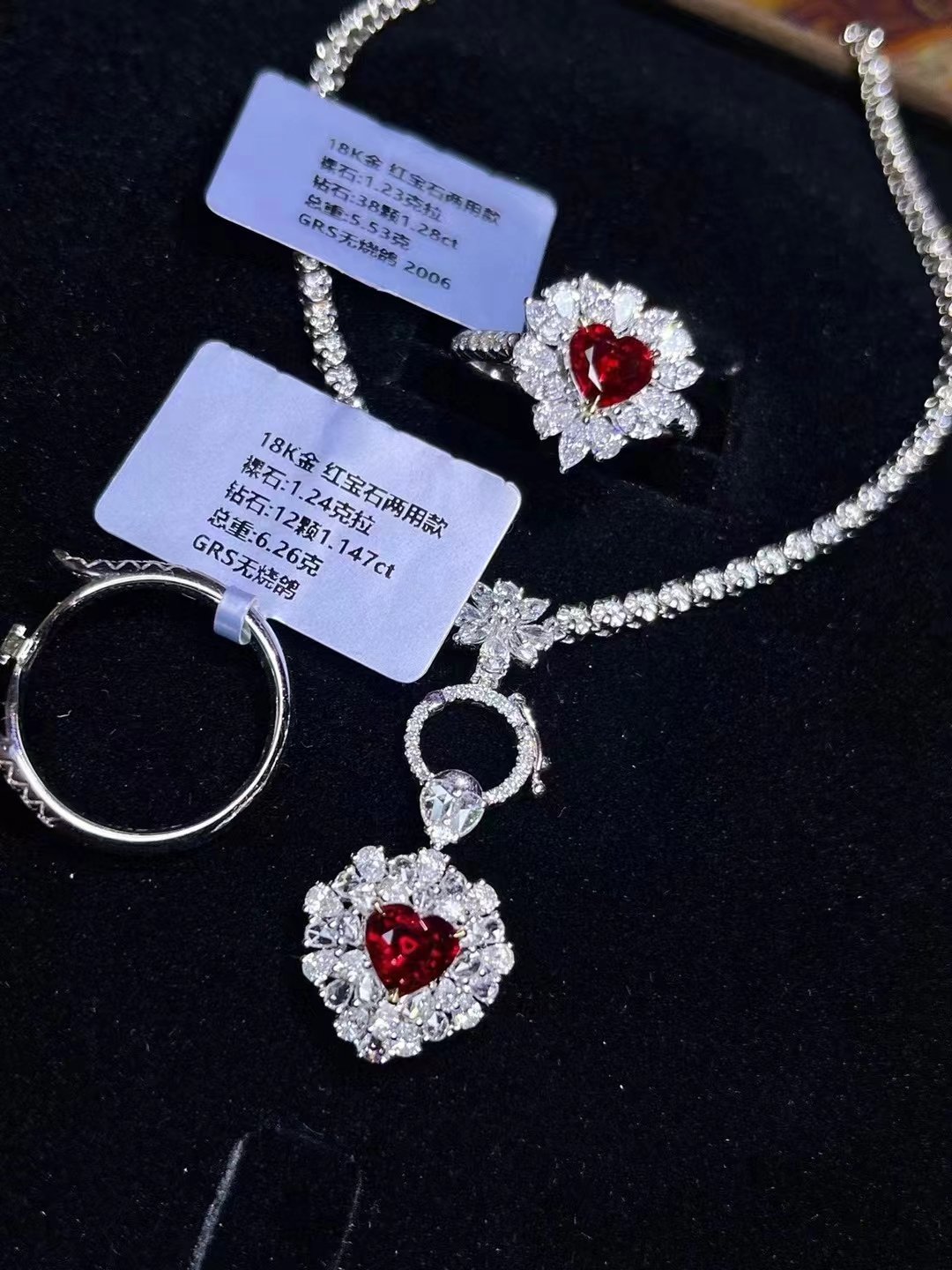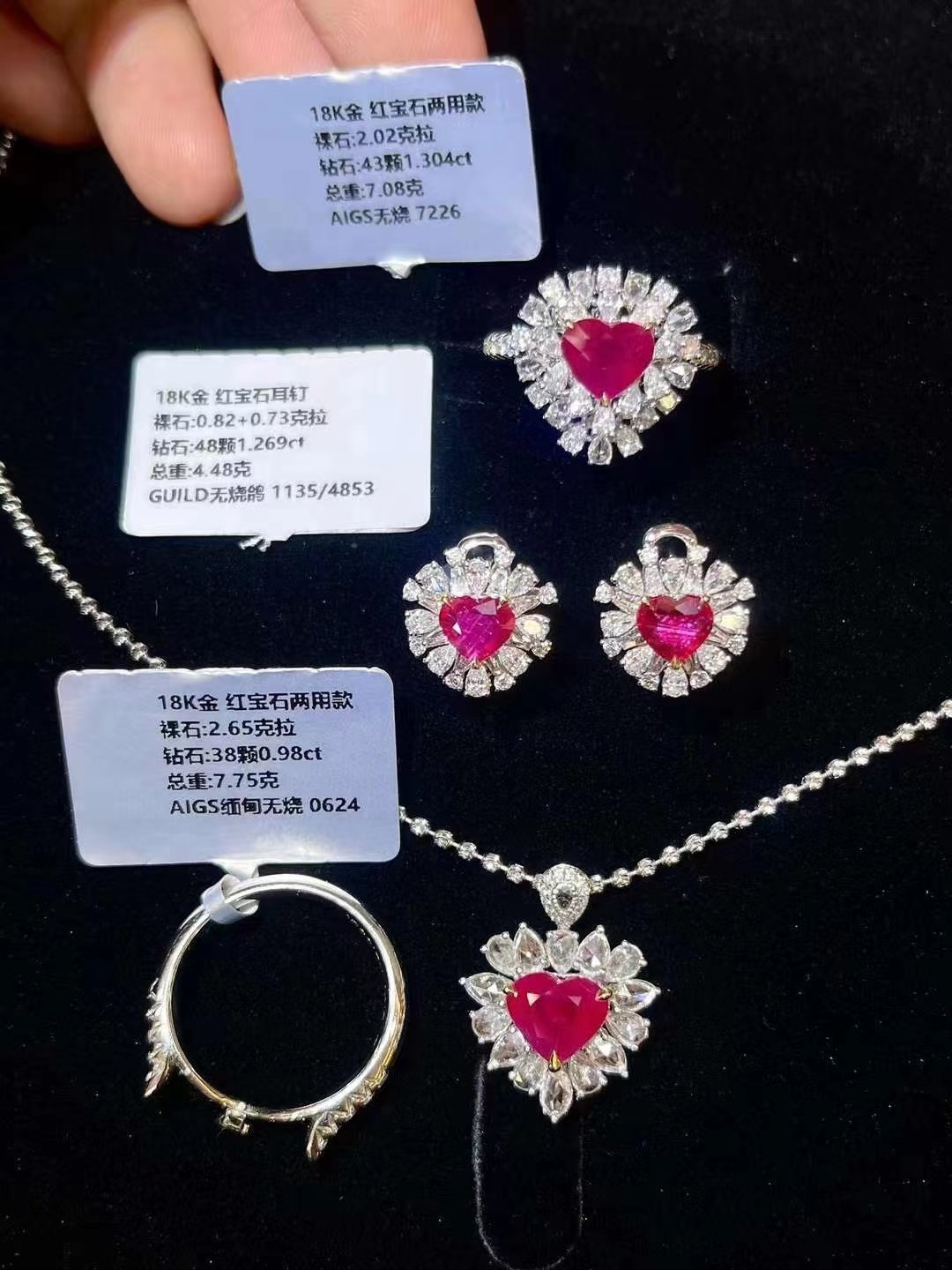 SGARIT Fine Jewelry Factory 18k White Gold 2.65 Carats Heart Cut VVS Jewellery With International Authority Certificate Luxury style Red ruby Natural Gemstone Three piece set.