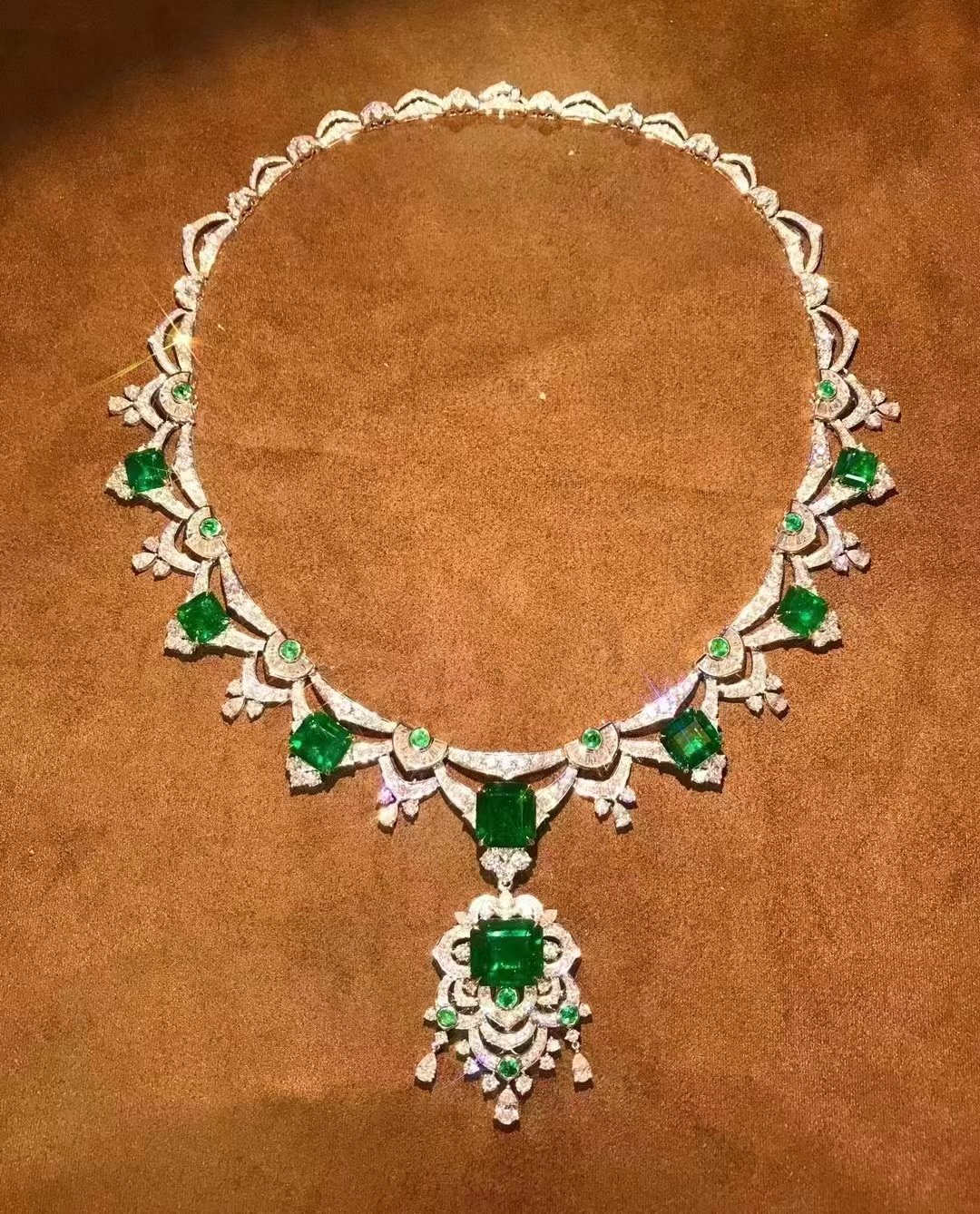 SGARIT Fine Jewelry Manufacturer 18k White Gold 41.01 Carats Emerald Cut VVS Jewellery With Guild Certificate Noble atmosphere style Emerald Natural Gemstone Necklace.