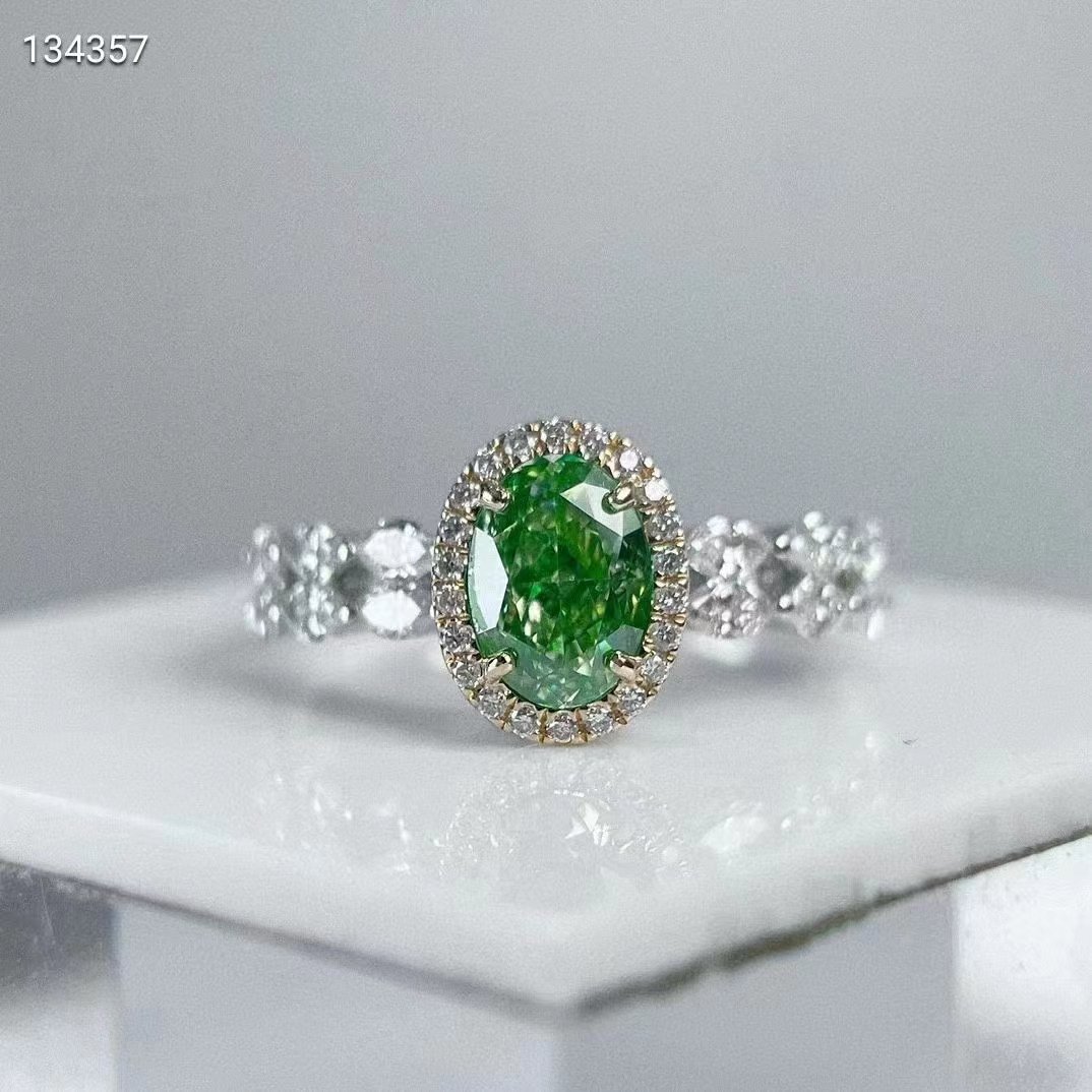 SGARIT Fine Jewelry Custom Wholesale Real 18k White Gold VS 1.15 Carats Oval Cut Jewellery With International Certificate Luxury Fancy Green Natural Diamond Ring