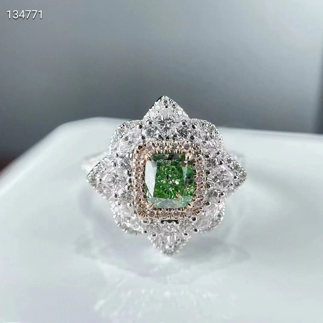 SGARIT Fine Jewelry Custom Factory Real 18k White Gold VVS 1.03 Carats Cushion Cut Jewellery With International Certificate Luxury Fancy Green Natural Diamond Ring