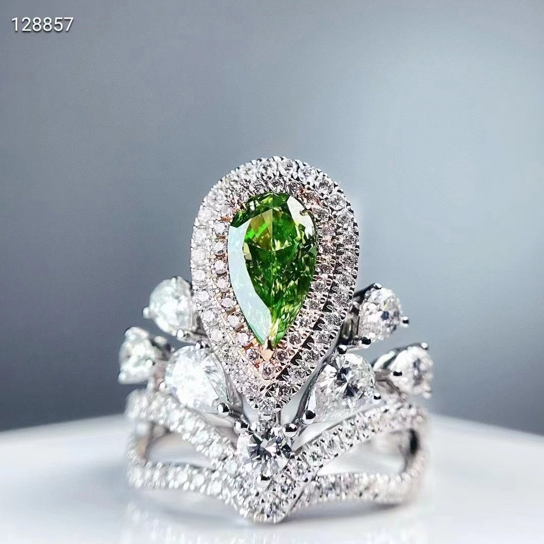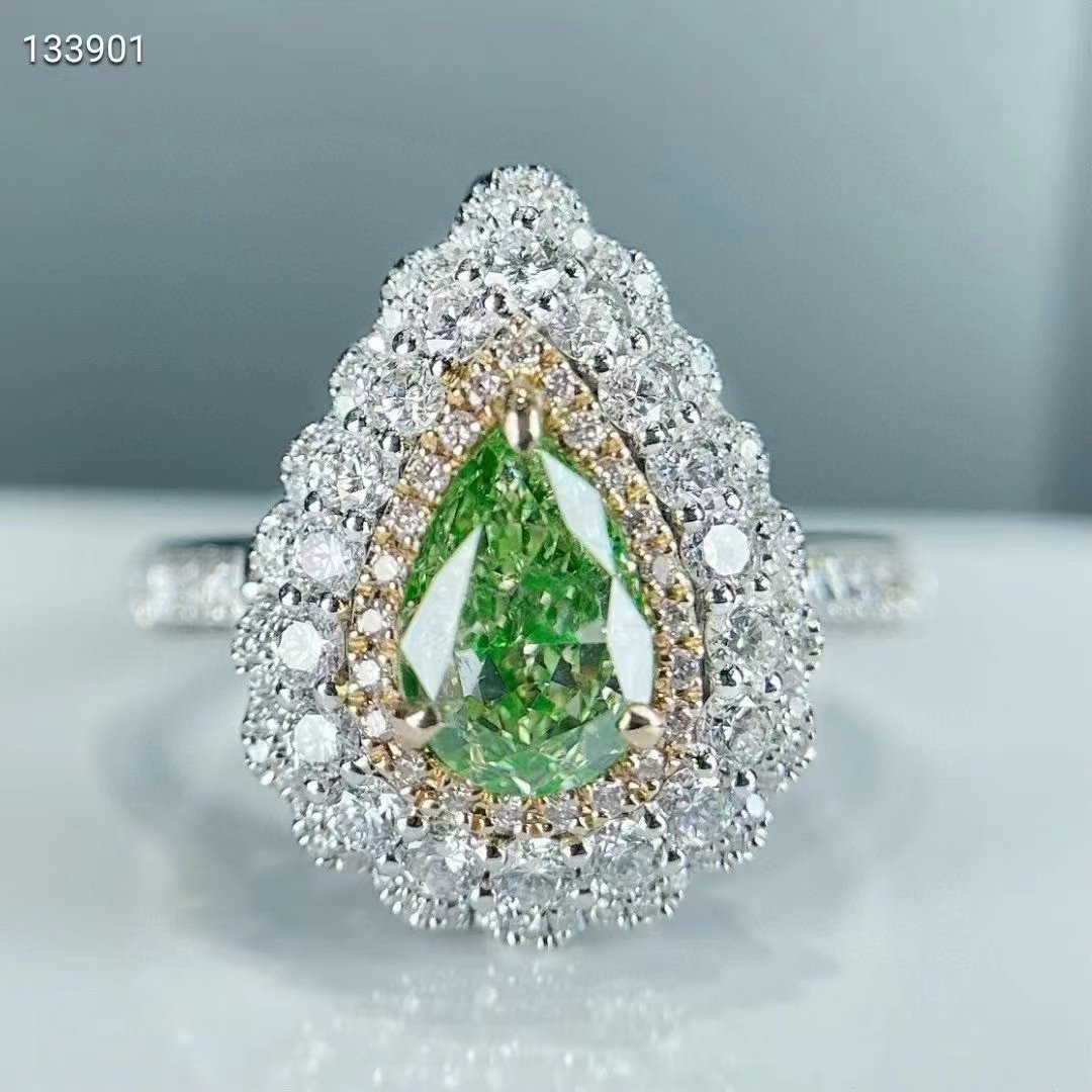 SGARIT Fine Jewelry Customized Wholesales Factory Real 18k White Gold VS 1.020 Carats Pear Cut Jewellery With International Certificate Luxury Fancy Green Natural Diamond Ring
