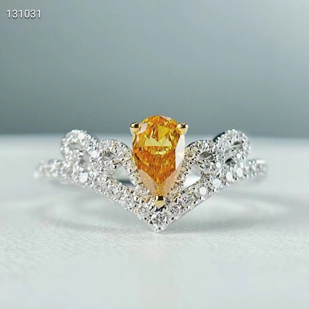 SGARIT Fine Jewellery Custom Factories Real 18k White Gold SI 0.360 Carats Pear Cut With International Certificate Luxury Fancy Orange Yellow Natural Diamond Rings Jewelry