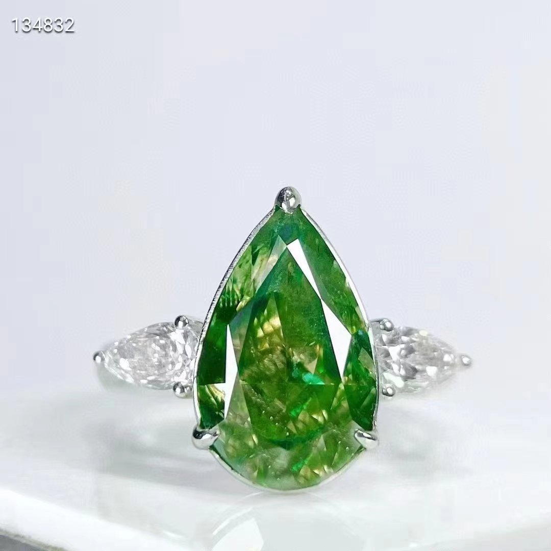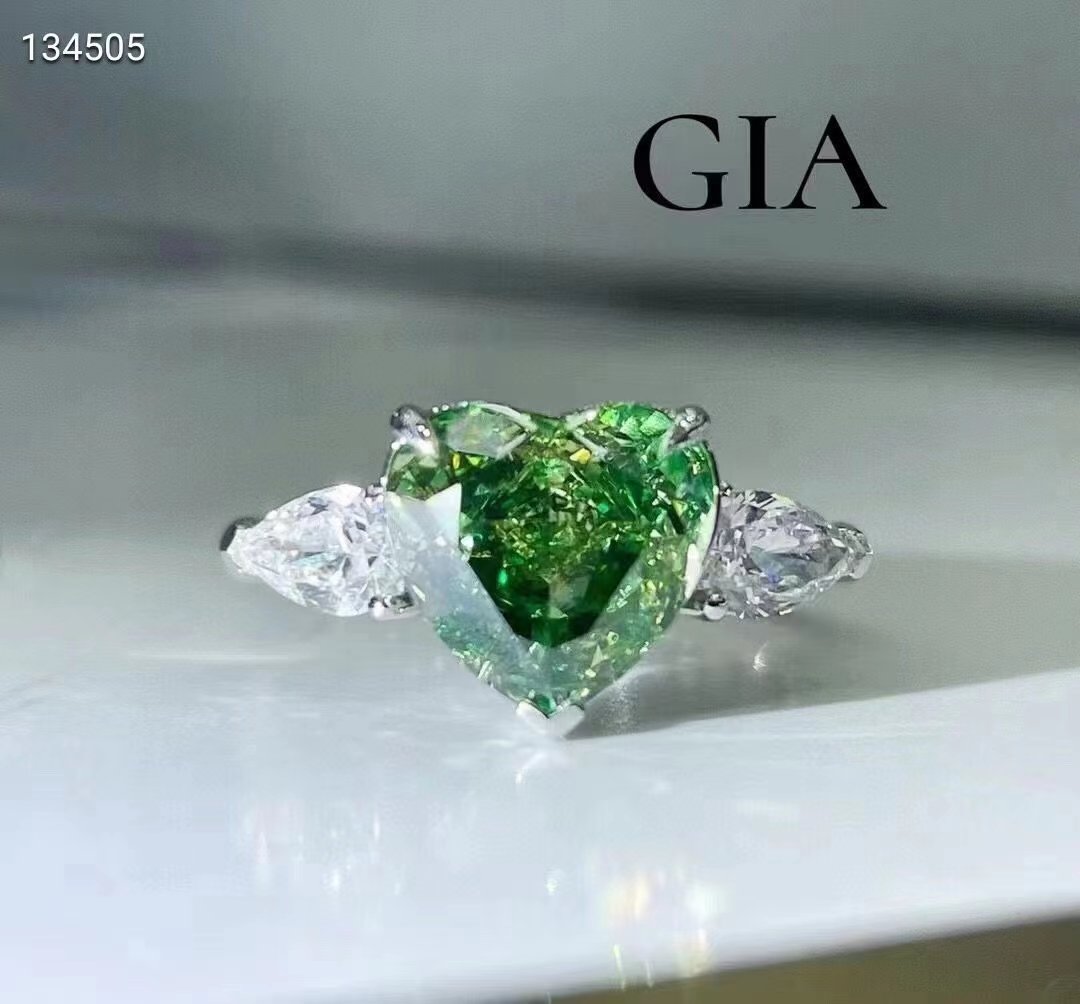 SGARIT Diamond Jewelry Wholesale 18k White Gold 3.03 Carats Heart Cut VVS2 Jewellery GRA Engagement Wedding Gift Sweet style fancy deep Green Natural diamond ring