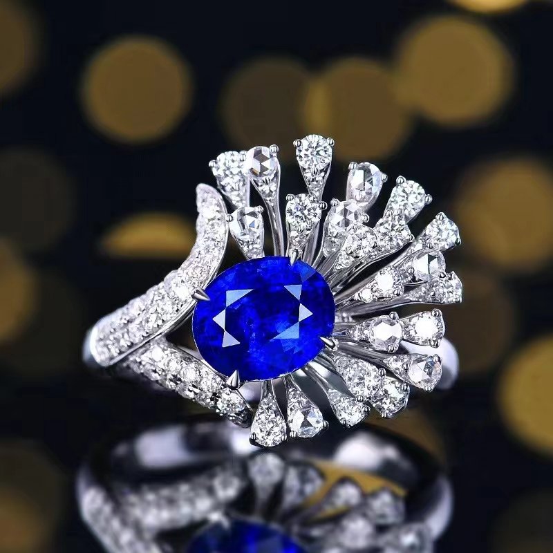 SGARIT Fine Jewelry Factory Solid 18k White Gold 2.22 Carats Oval Cut VVS Jewellery With GRC Authority Certificate Romantic Royal Sapphire Natural Gemstone Ring.