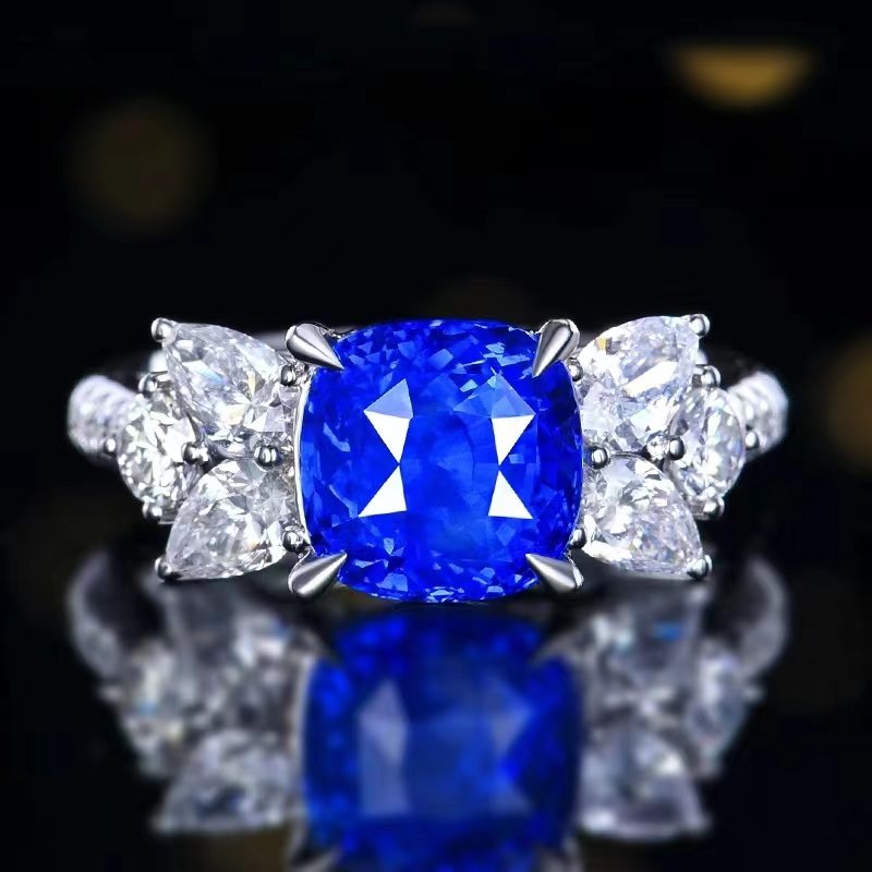 SGARIT Fine Jewelry Factory Solid 18k White Gold 2.91 Carats Cushion Cut VVS Jewellery With GRC Authority Certificate Romantic Royal Sapphire Natural Gemstone Ring.