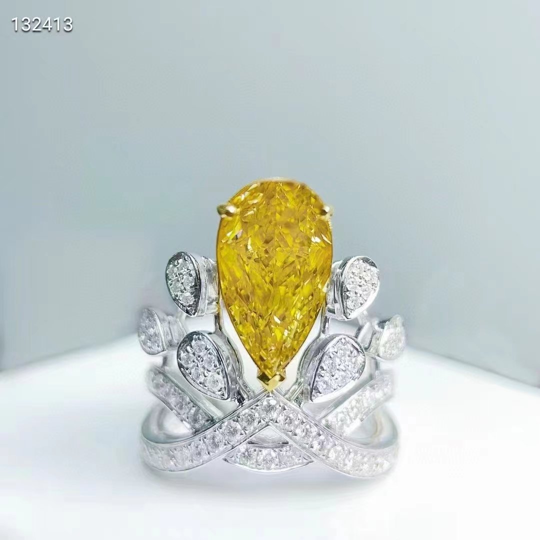 SGARIT Fine Jewelry Factory Solid 18k White Gold 4.02 Carats Pear Cut VVS Jewellery With AIGS Grand Certificate Classic Natural Diamond Yellow Ring