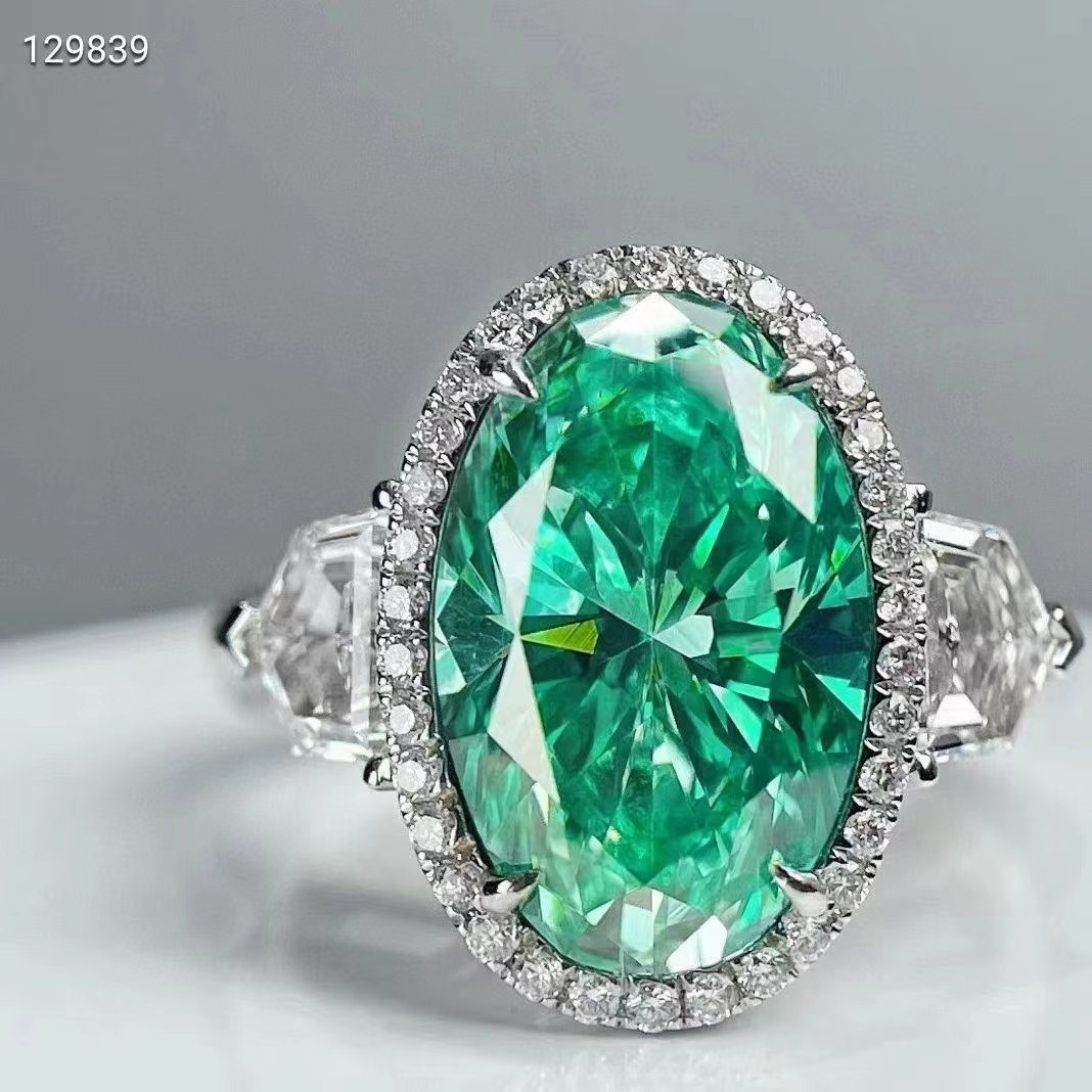 SGARIT Fine Jewelry Factory Solid 14k White Gold 1 Carats Oval Cut VVS Jewellery With GIA Certificates Classic Green Moissanite Ring.