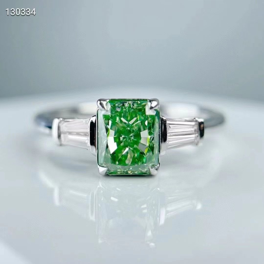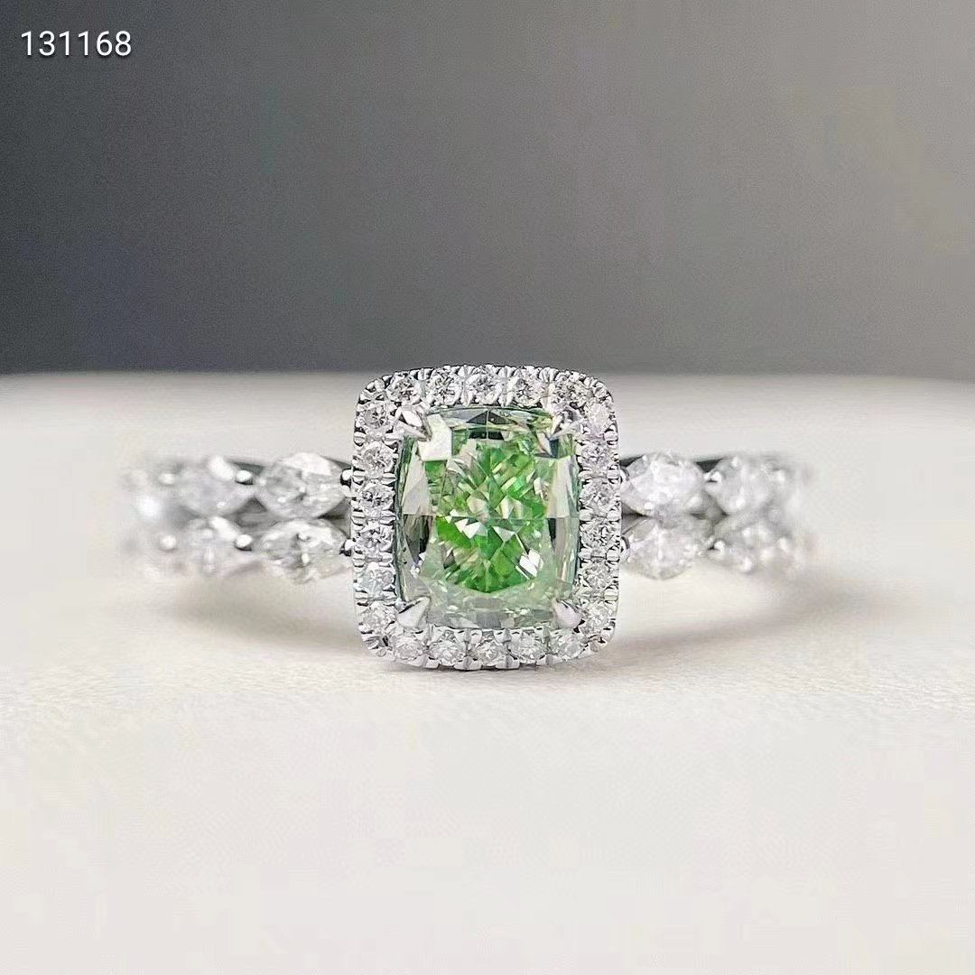 SGARIT Fine Jewelry Factory Solid 14k White Gold 1 Carats Cuahion Cut VVS Jewellery With GIA Certificates Classic Green Natural Diamond Ring
