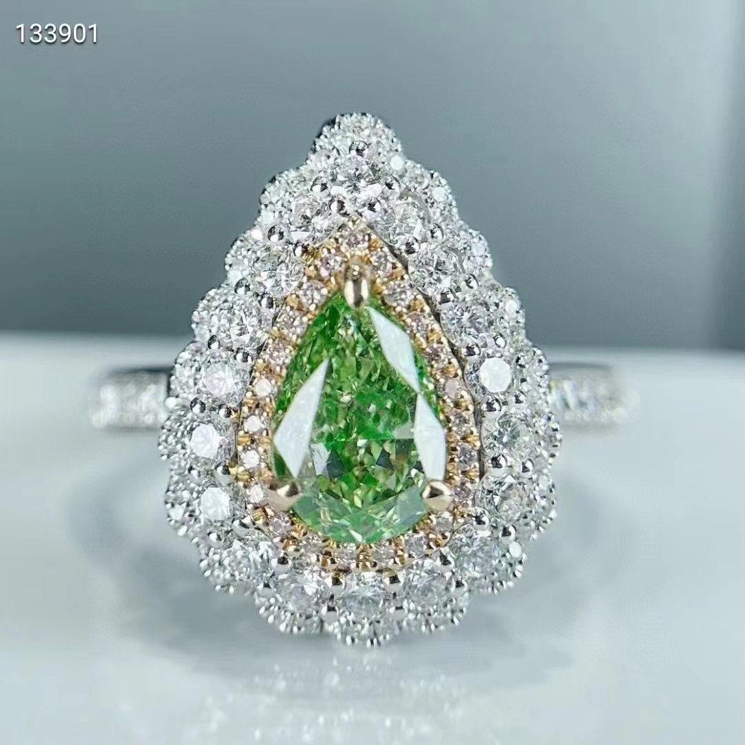 SGARIT Fine Jewelry Factory Solid 14k White Gold 1 Carats Pear Cut VVS Jewellery With GIA Certificates Classic Green Natural Diamond Ring