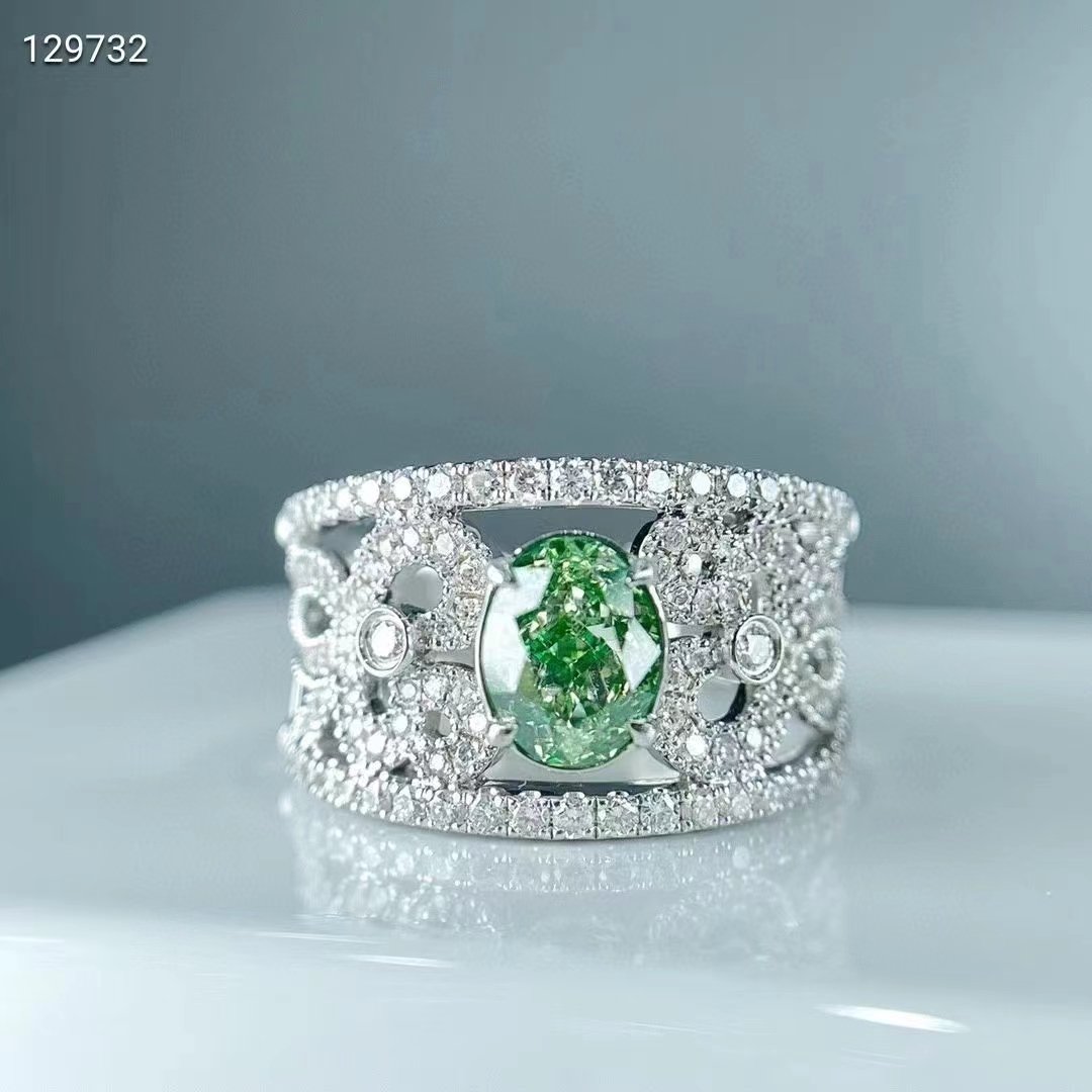 SGARIT Fine Jewelry Factory Solid 18k White Gold 1.02 Carats Oval Cut VVS Jewellery With AIGS Grand Certificate Classic Natural Diamond Green Ring