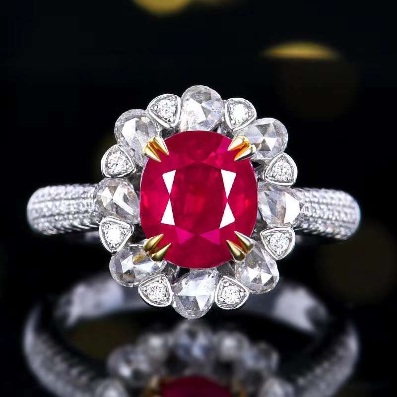 SGARIT Fine Jewelry Manufacturer 18k White Gold 2.23 Carats Oval Cut VVS Jewellery With AIGS Authority Certificate Romantic Ruby Natural Gemstone Ring.