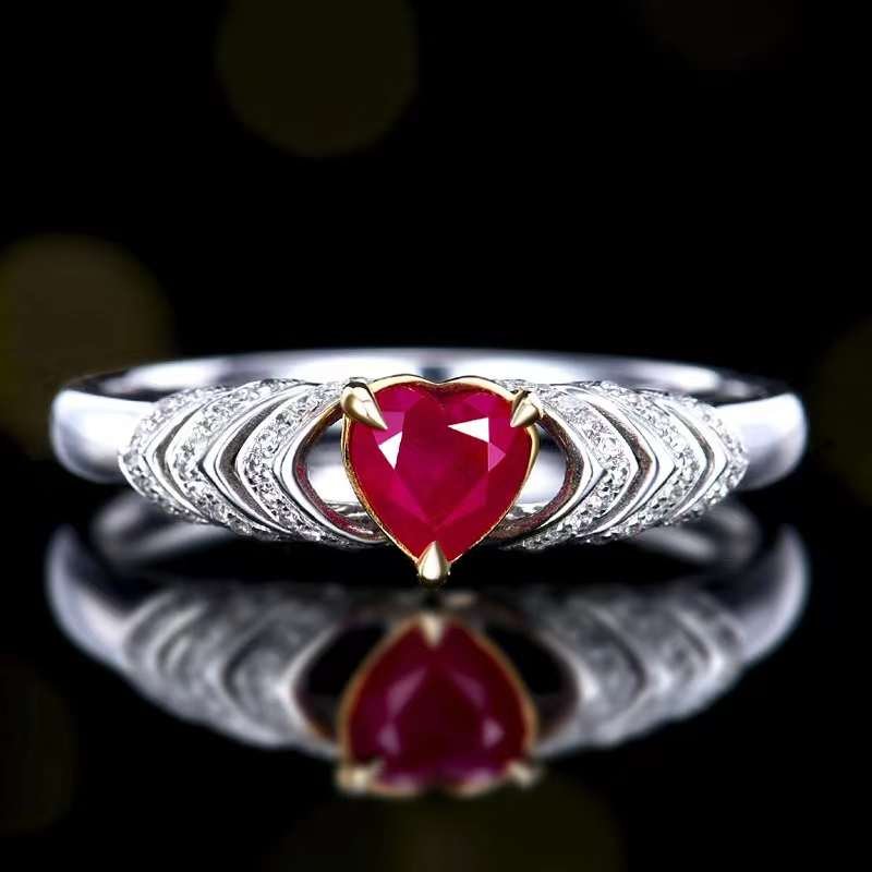 SGARIT Fine Jewelry Manufacturer 18k White Gold 0.4 Carats Heart Cut VVS Jewellery With AIGS Authority Certificate Romantic Ruby Natural Gemstone Ring.