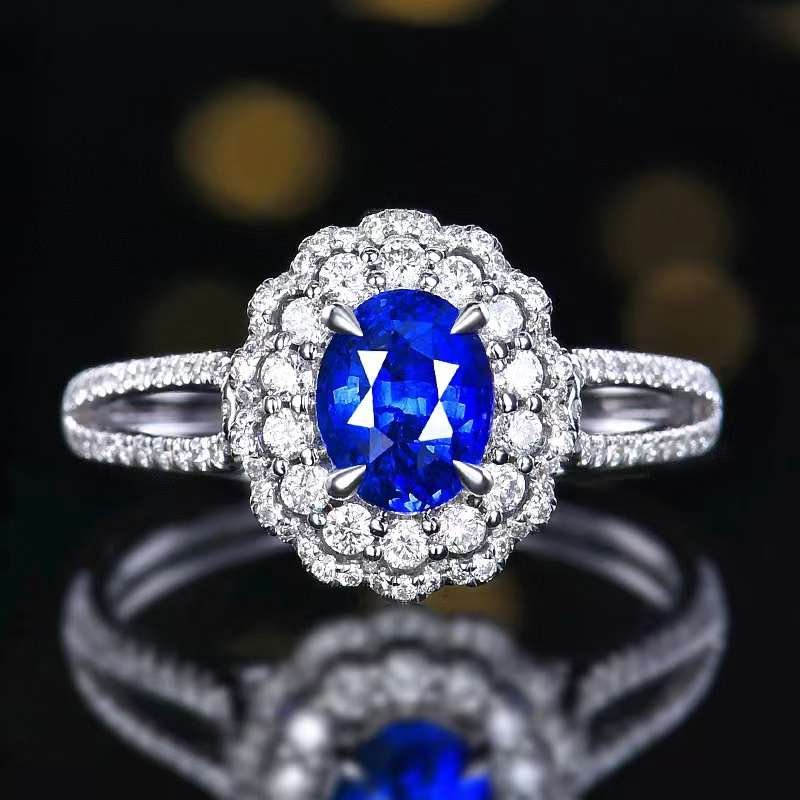 SGARIT Fine Jewelry Manufacturer Custom Real 18k White Gold 1.31 Carats Oval Cut VVS Jewellery With GRC Authority Certificate Romantic Royal Blue Sapphire AU750 Natural Gemstone Ring.