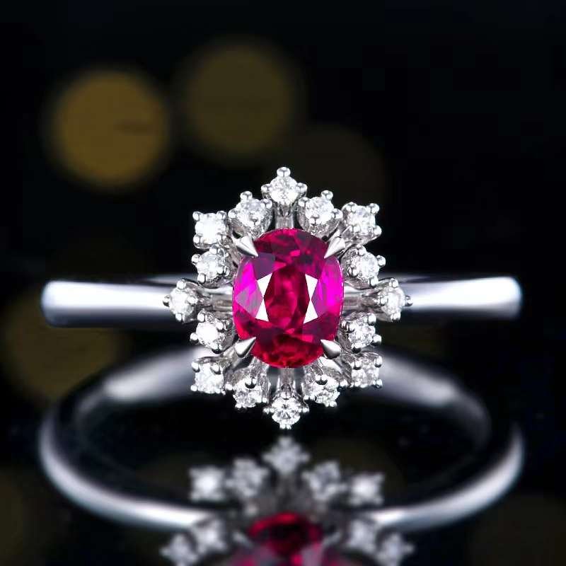 SGARIT Fine Jewelry Manufacturer Custom Real 18k White Gold 0.81 Carats Oval Cut VVS Jewellery With GUILD Authority Certificate Romantic Unburned Ruby Natural Gemstone Ring.