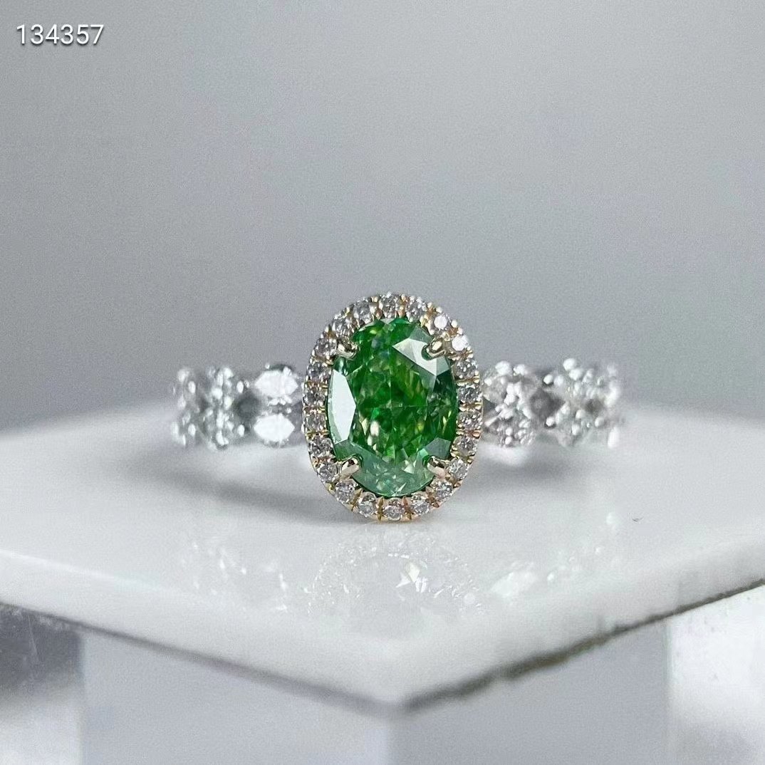 SGARIT Fine Jewelry Factory Solid 14k White Gold 1 Carats Oval Cut VVS Jewellery With GRC Authority Certificate Classic Green Natural Diamond Ring