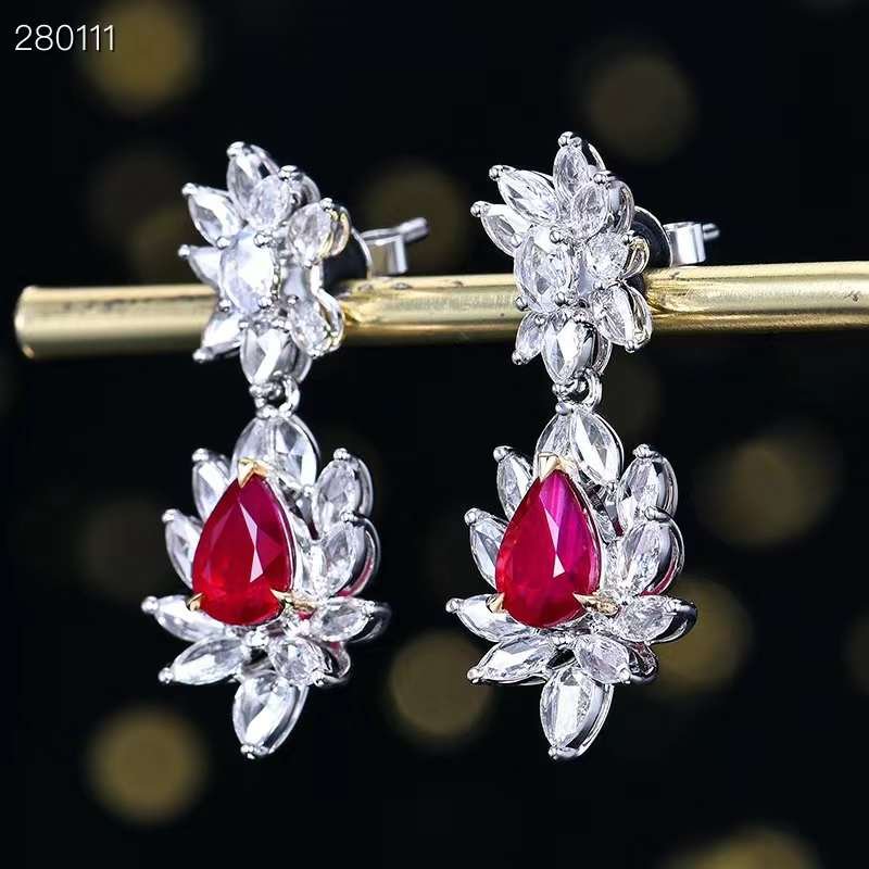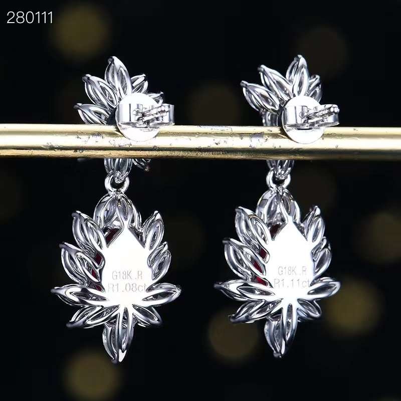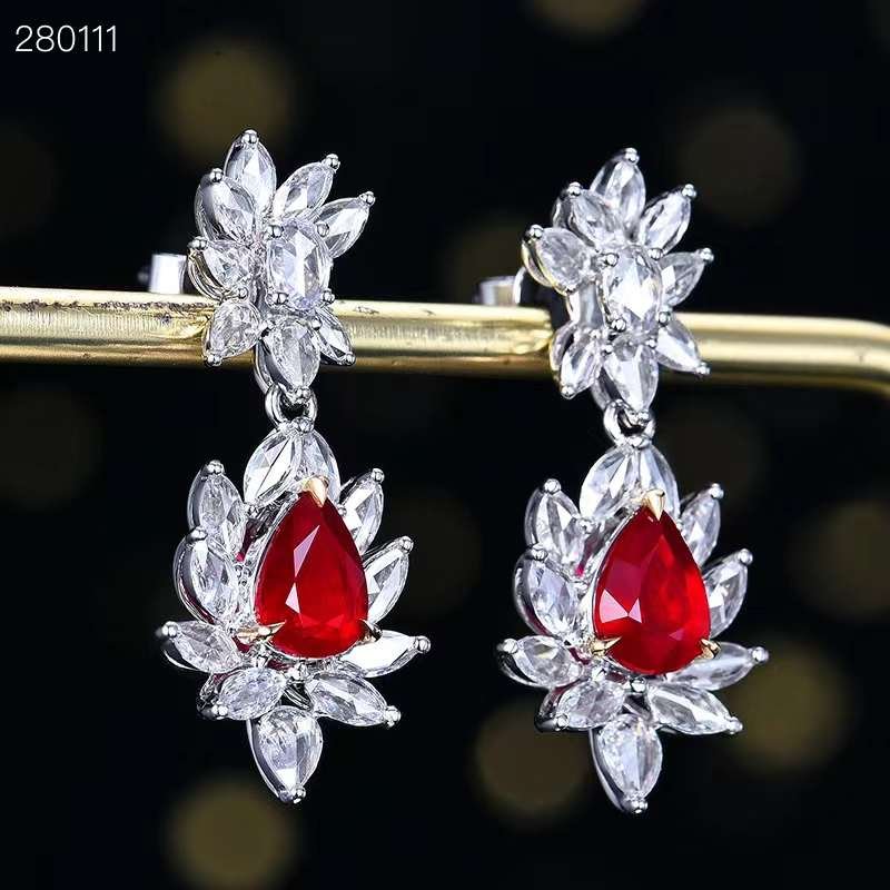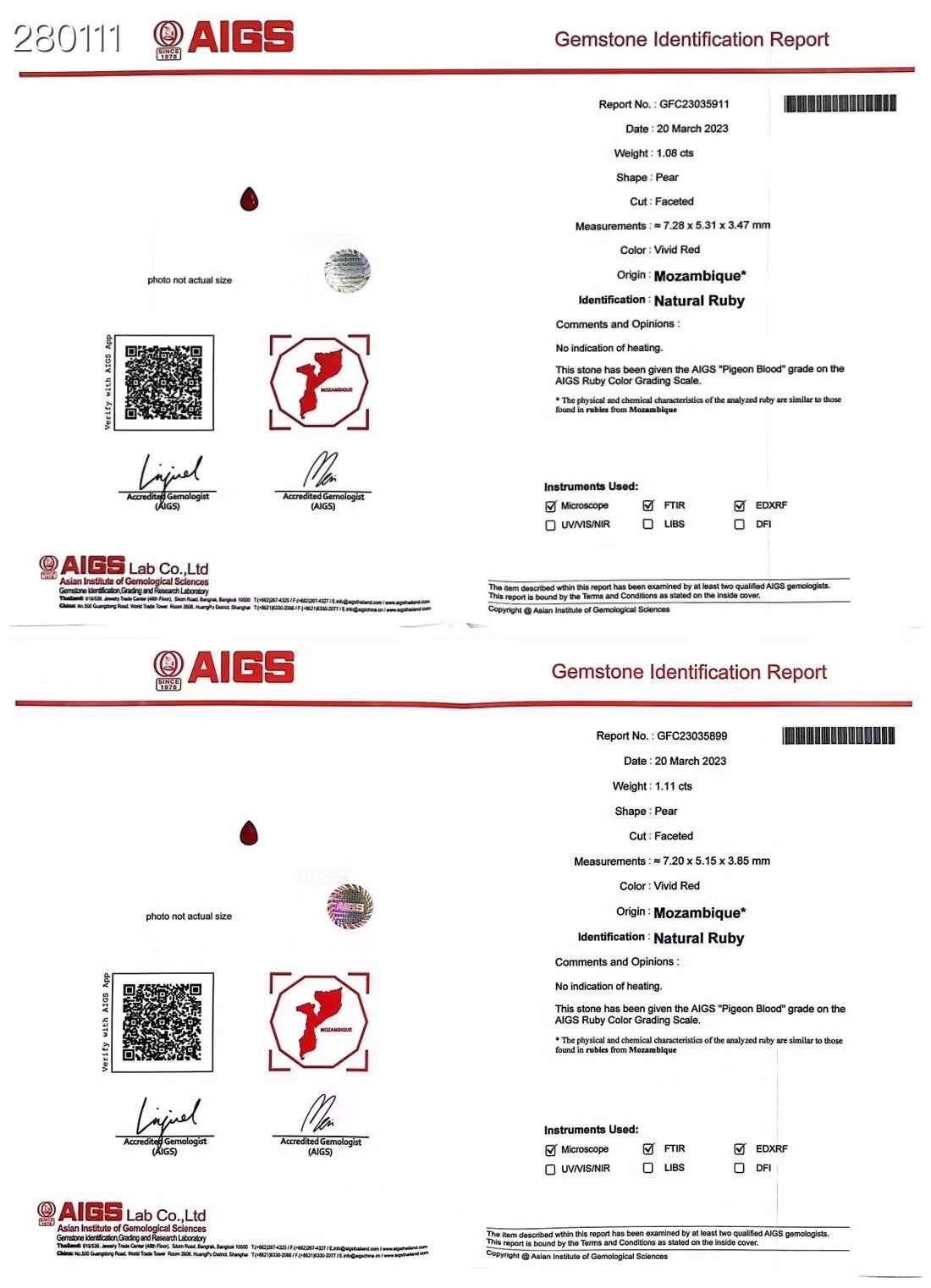 Featuring a mesmerizing 1.11 carat pear-cut VVS pigeon blood ruby, these earrings exude an aura of timeless sophistication. The radiant gemstone, sourced from the depths of nature, boasts an unheated origin, preserving its exceptional brilliance and vibrant color.