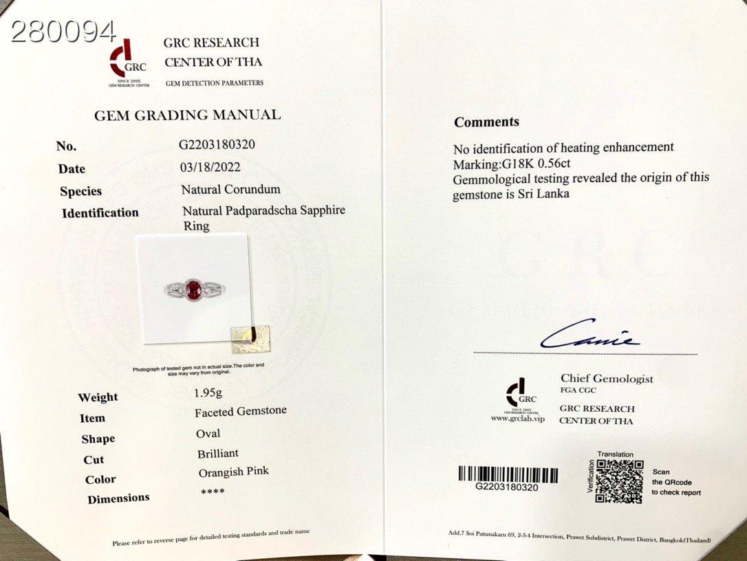 Fine Jewelry Manufacturer 18K Gold Jewelry Ring Oval Cutting 0.56Ct Papalacha Sapphire Natural Gemstone Ring Women