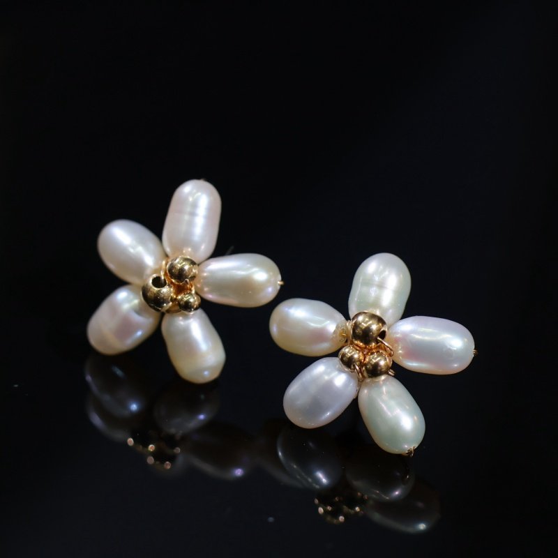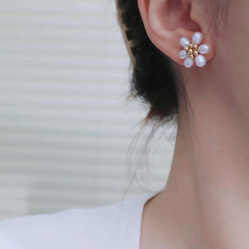 SGARIT Cute Flower Shaped Natural Freshwater Pearl Earrings 14k Filled Gold DIY Women’s Earrings Ear Accessories Jewelry