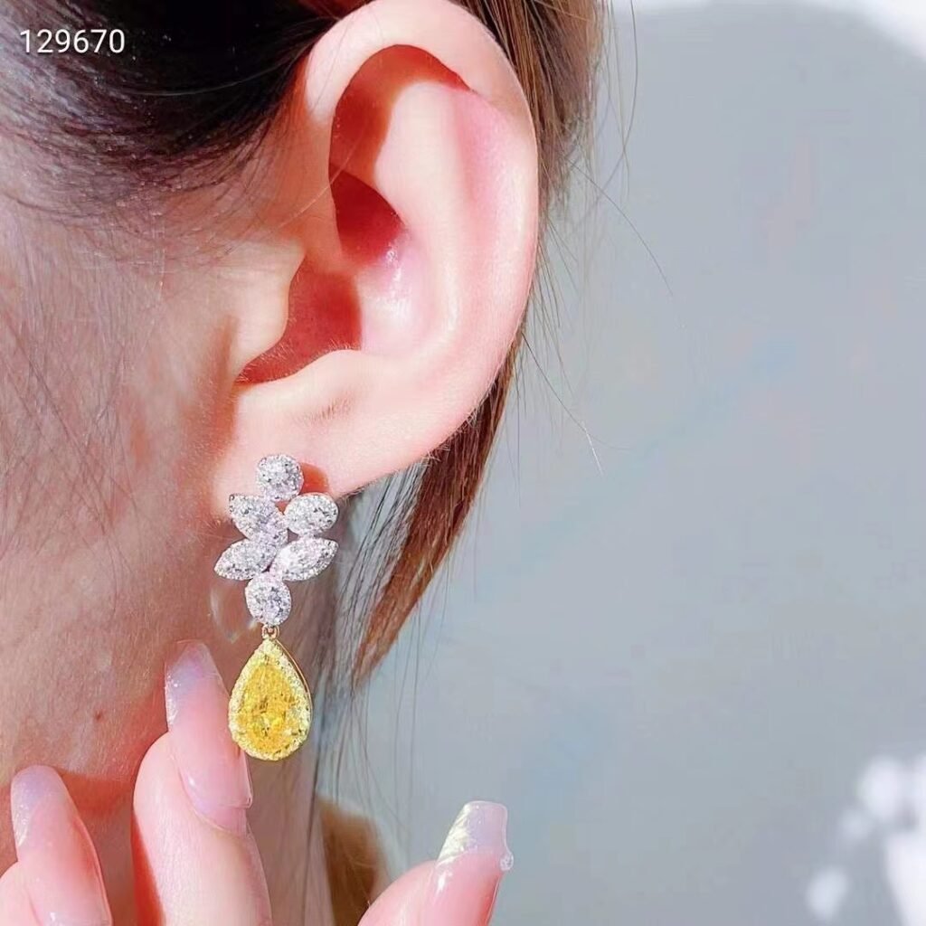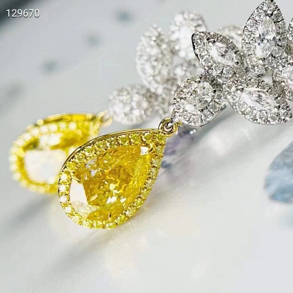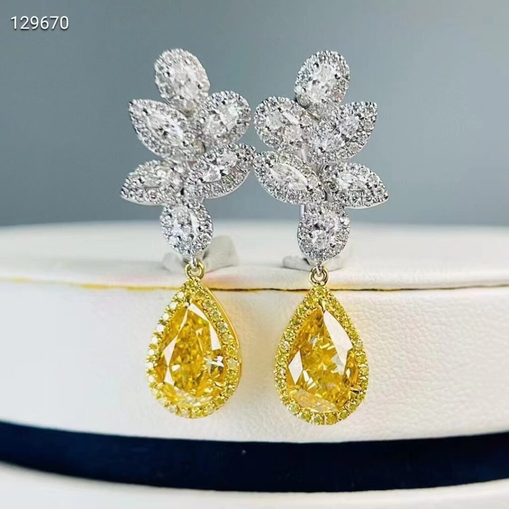 SGARIT Fine Jewelry Factory 18k White Gold 4.01 Carats Pear Cut VVS2 Jewellery GRA Engagement Wedding Gift Simple atmosphere Fancy Brownish Yellow Diamond earrings.
