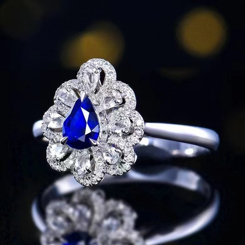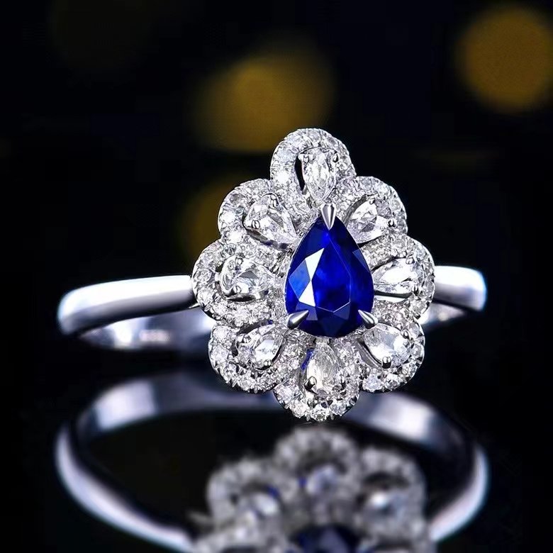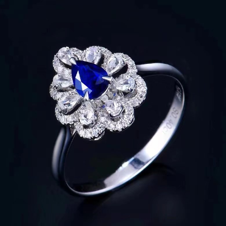 SGARIT Fine Jewelry Custom Factory Real 18k White Gold Sri Lanka 0.55 Carats Pear Cut Jewellery With Third Party Appraisal Romantic Royal Blue Sapphire Natural Gemstone Ring