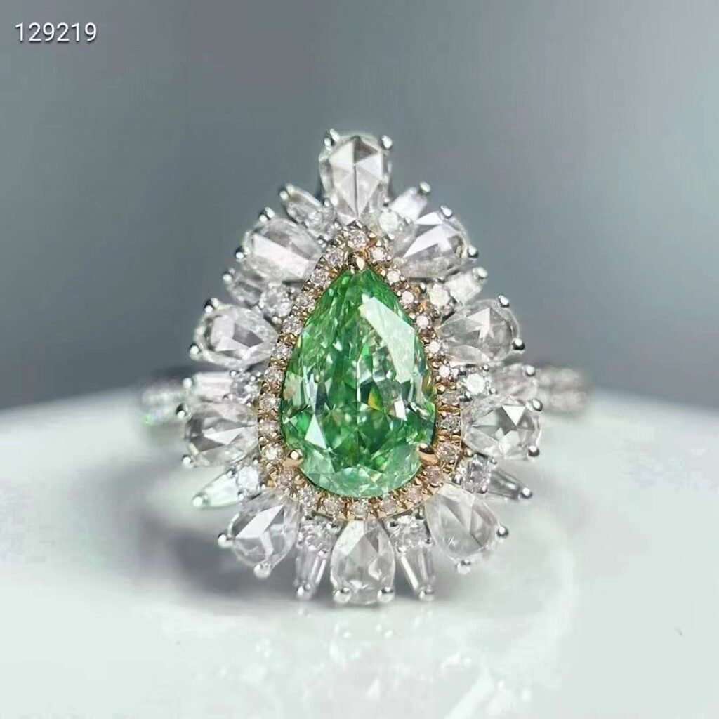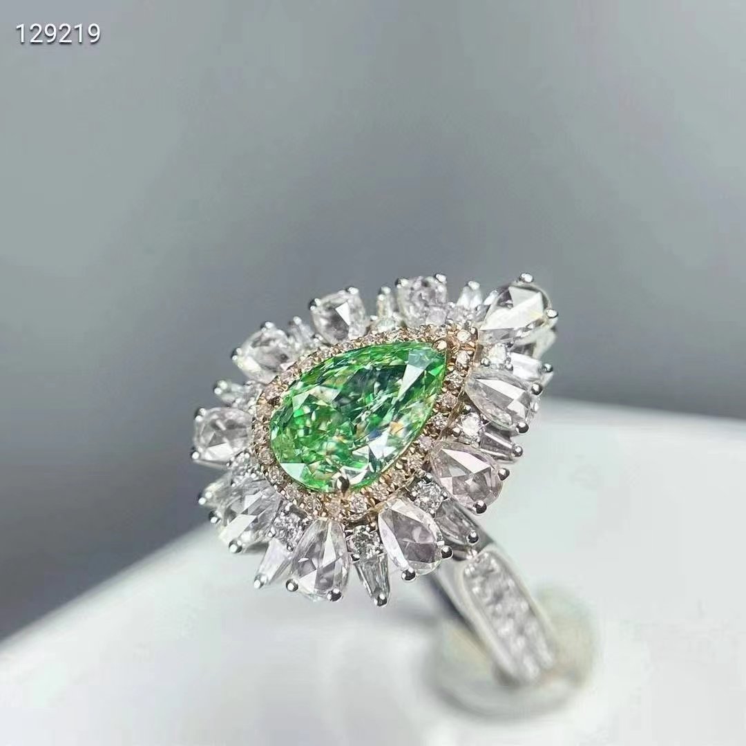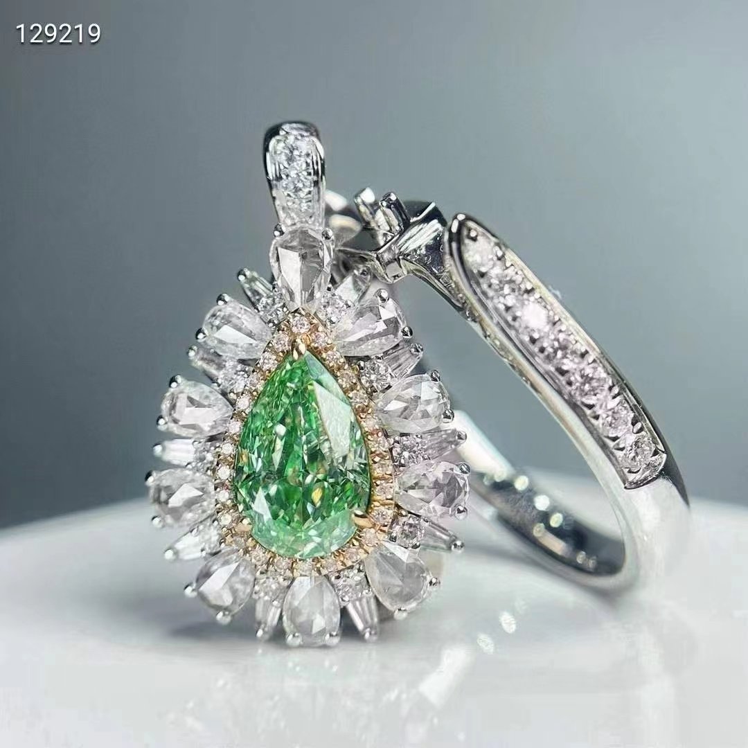 SGARIT Fine Jewelry Custom Factory Real 18k White Gold VS 1.020 Carats Pear Cut Jewellery With International Certificate Luxury Fancy Green Natural Ring