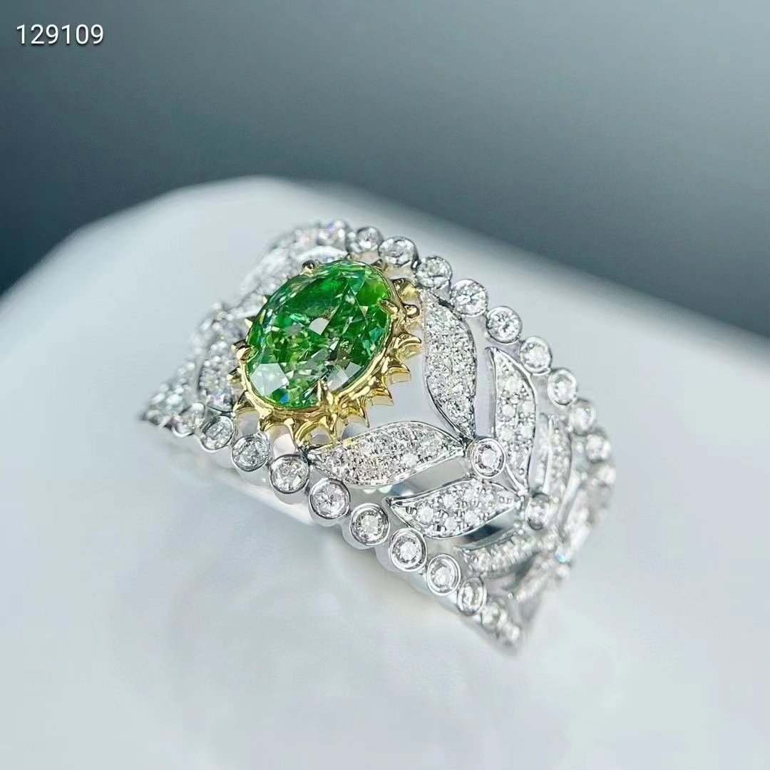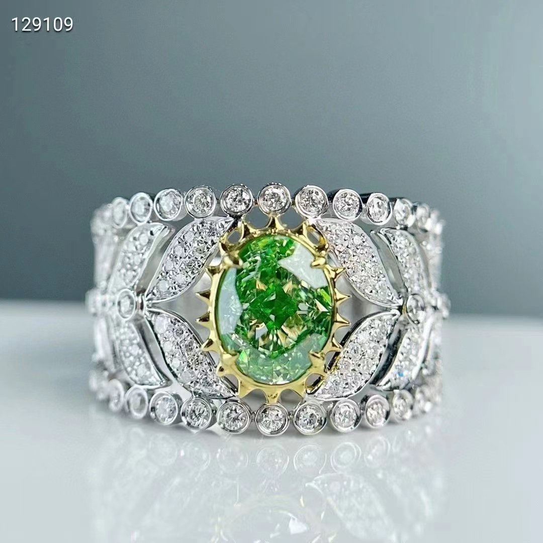 SGARIT Fine Jewelry Custom Factory Real 18k White Gold VS 1.15 Carats Oval Cut Jewellery With International Certificate Luxury Fancy Green Natural Ring