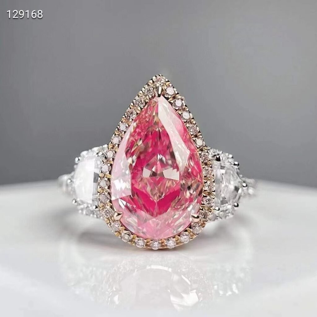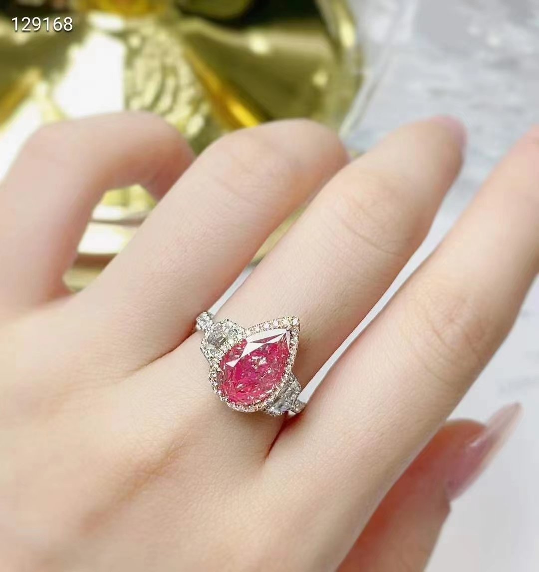 SGARIT Fine Jewelry Custom Factory Real 18k White Gold Vs 3.02 Carats Pear Cut Jewellery With Third Party Appraisal Luxury Fancy Pink Moissanite Diamond Ring