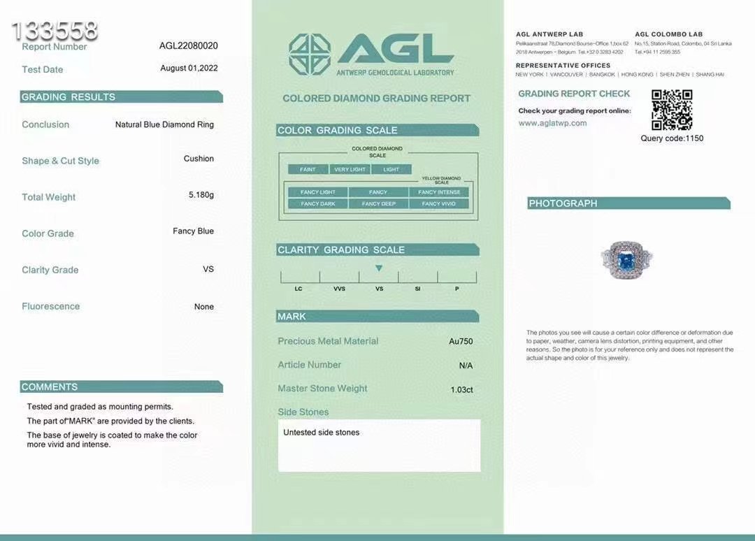 SGARIT Fine Jewelry Custom Factory Real 18k White Gold VS1 1.030 Carats Cushion Cut Jewellery With International Certificate Luxury Fancy Blue Diamond