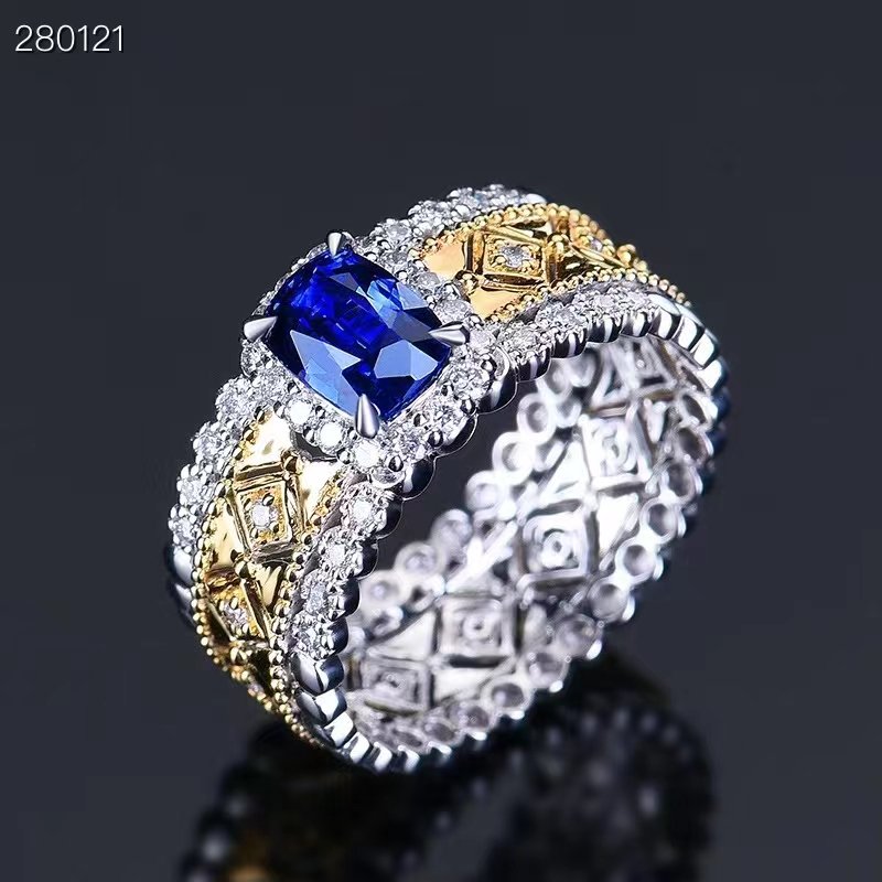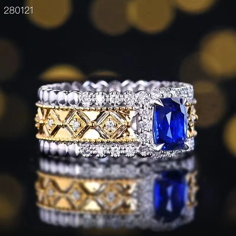 SGARIT Fine Jewelry Custom Factory Solid 18k White Gold 1.2 Carats Cushion Cut Jewellery With AIGS Certificate Luxury Royal Blue Sapphire Natural Gemstone Ring