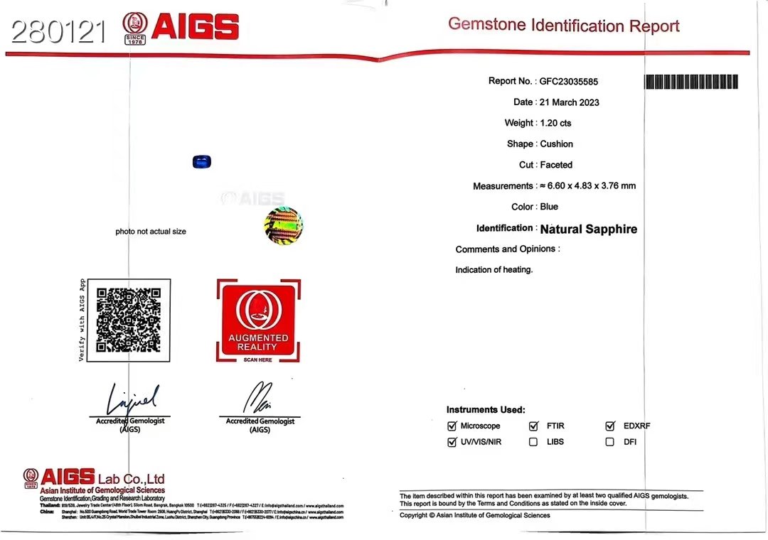 Accompanied by an AIGS certificate, this exceptional ring exudes authenticity and quality, guaranteeing the exceptional origin and characteristics of the sapphire.