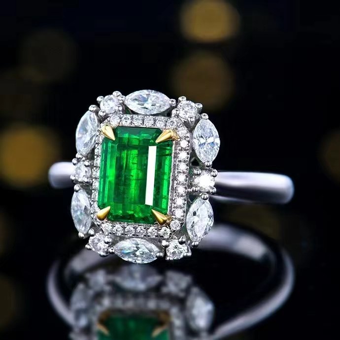 | Jewelry name | 18K White Gold Vivid Green Emerald Natural Gemstone Ring Jewelry |