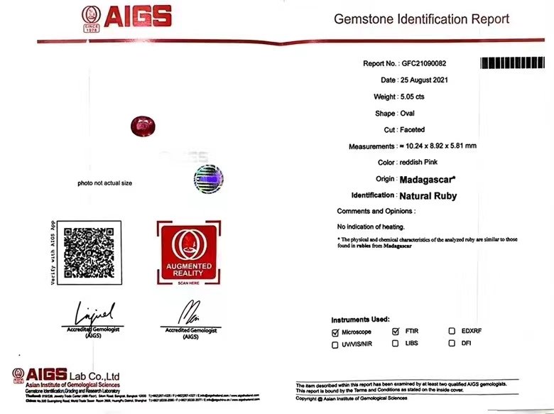 | Certificate | AIGS Certification |
