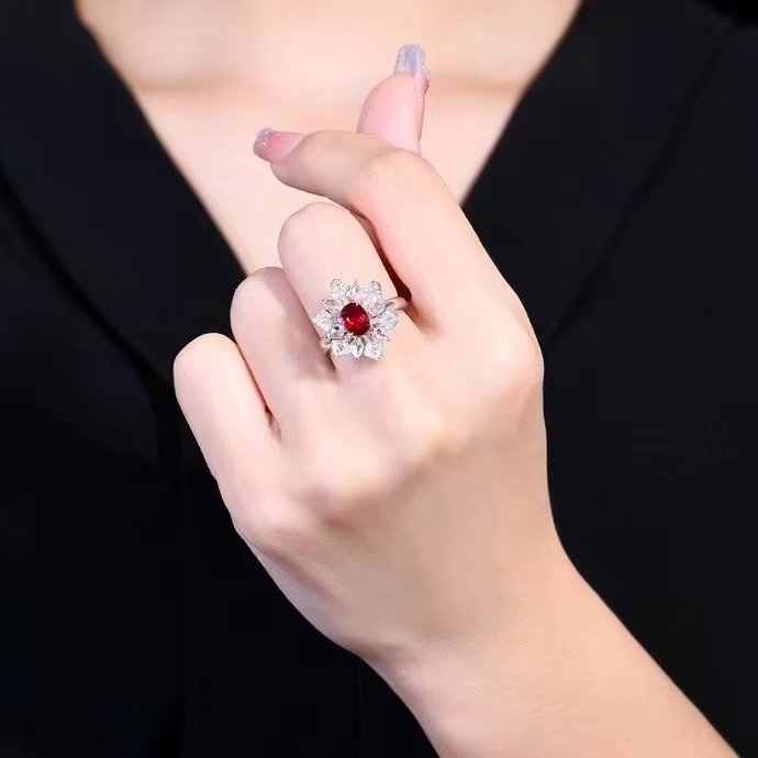 | Jewelry name | 18K White Gold Unheated Pigeon Red Ruby Natural Gemstone Ring Jewelry |