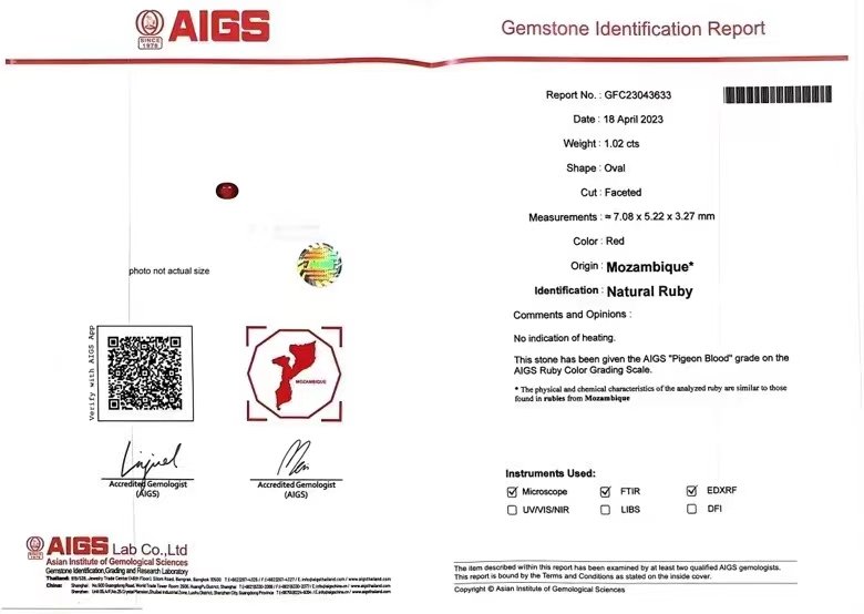 | Jewelry main material | Unheated Pigeon Red Ruby |