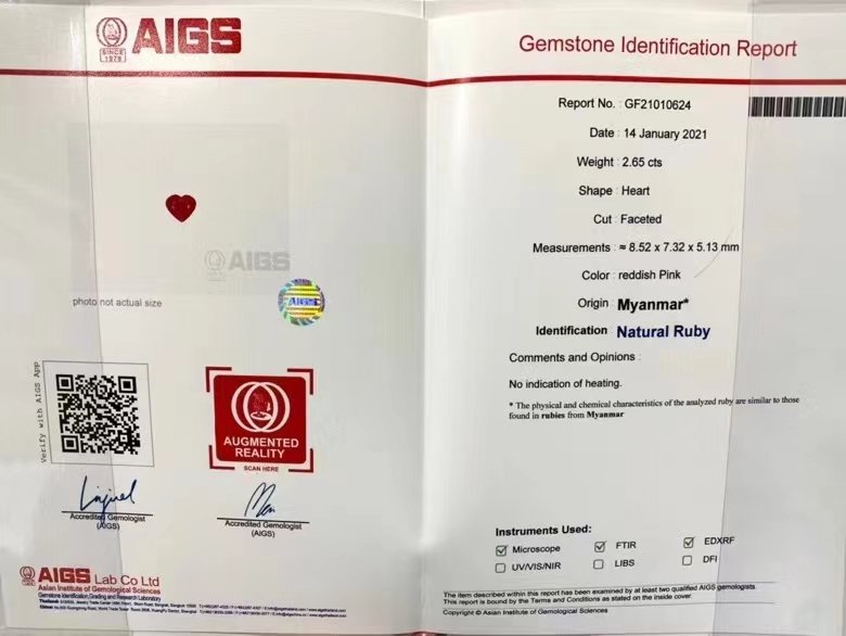 SGARIT Fine Jewelry Custom Factory Solid 18k White Gold Myanmar 2.65 Carats Heart Cut Jewellery With AIGS Certificate Luxury Unheated Ruby Natural Gemstone Ring