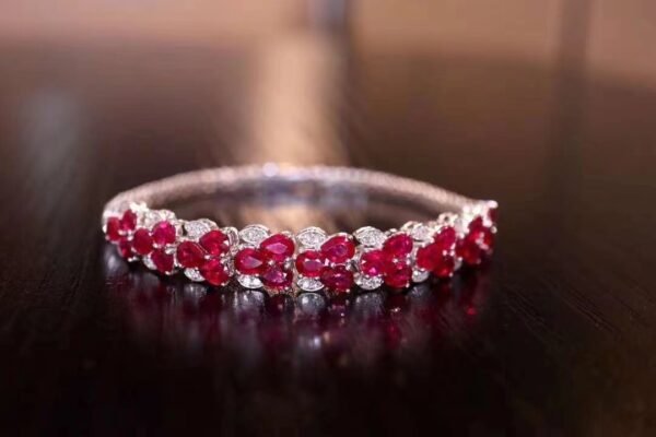 Whether you are seeking a statement piece for a special occasion or a timeless addition to your jewelry collection, this 18k white gold bracelet with a 4.25-carat pear-cut ruby is sure to captivate and inspire.