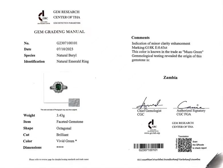 This exceptional ring is accompanied by a prestigious GRC certificate, guaranteeing the authenticity and exceptional quality of the emerald. With its unwavering commitment to excellence, SGARIT Fine Jewelry has meticulously selected this gemstone to ensure that it meets the highest standards of brilliance, color, and clarity.
