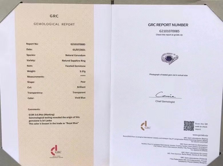 • Certificate: GRC certificate of authenticity