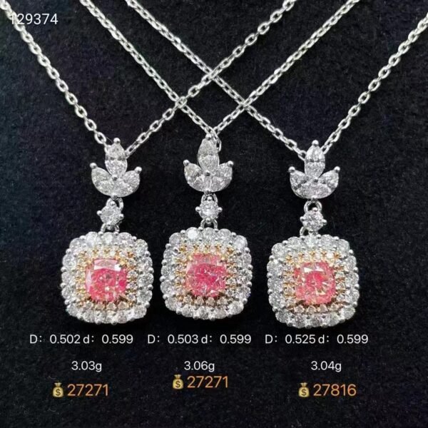 SGARIT Fine Jewelry Factory 18k White Gold 0.502 Carats Cushion Cut VVS Jewellery With International Certificate Cute pink Natural Diamond necklace.