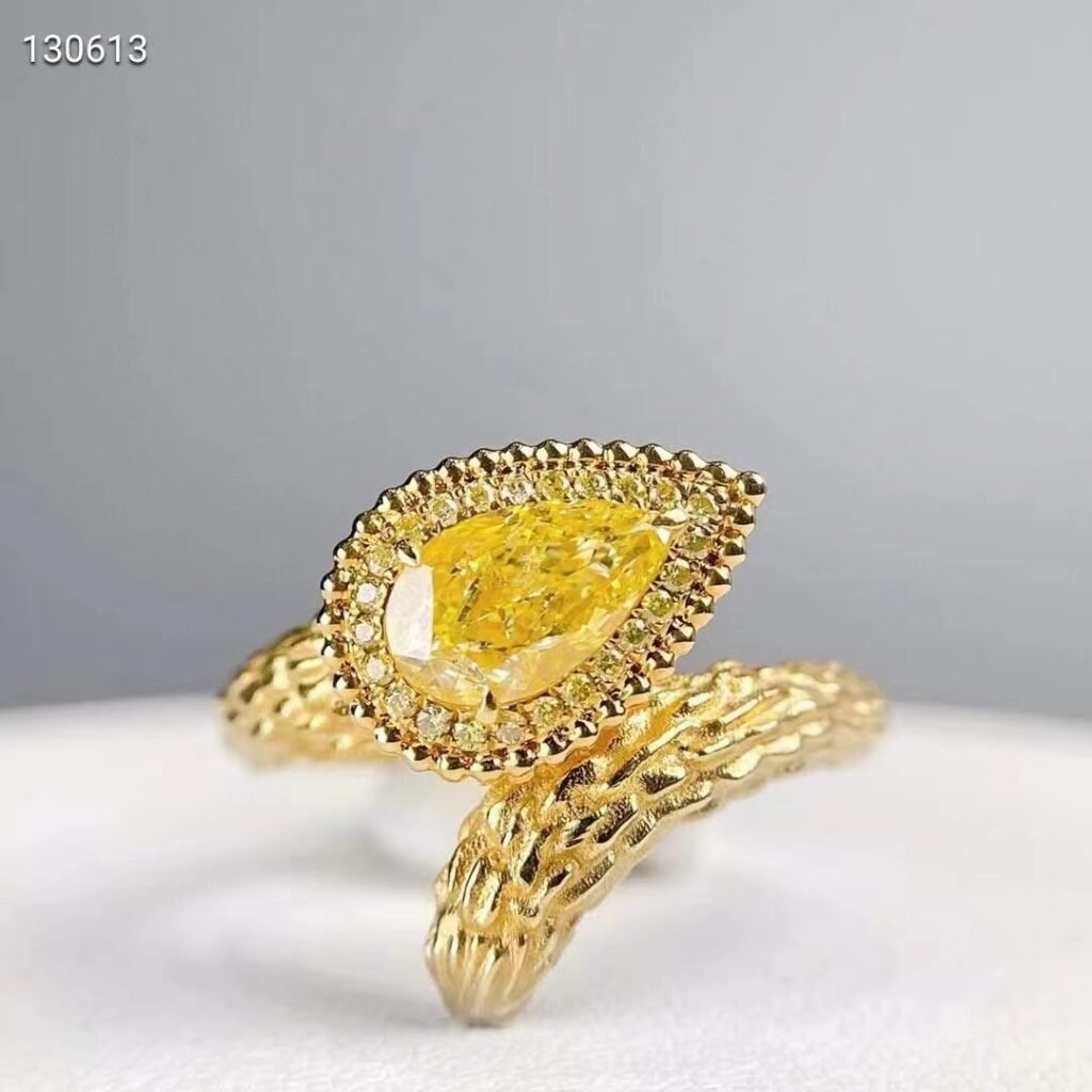 SGARIT Fine Jewelry Factory 18k White Gold 1.01 Carats Pear Cut VS Jewellery With GIA Certificates Serpentine Fancy Yellow Natural Diamond Ring.