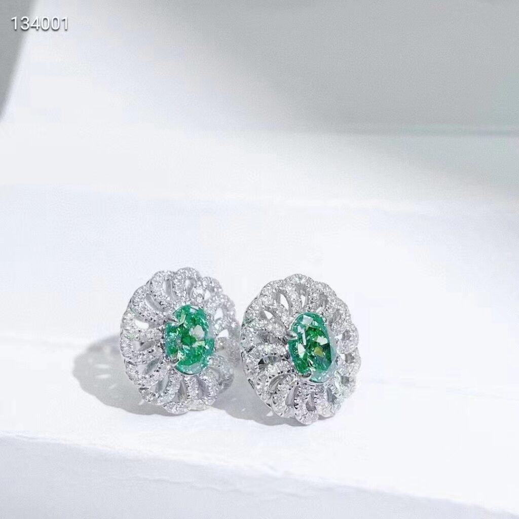 SGARIT Fine Jewelry Factory 18k White Gold 1.22 Carats Oval Cut VS Jewellery GRA Engagement Wedding Gift Classic Fancy Green Natural diamond earrings.