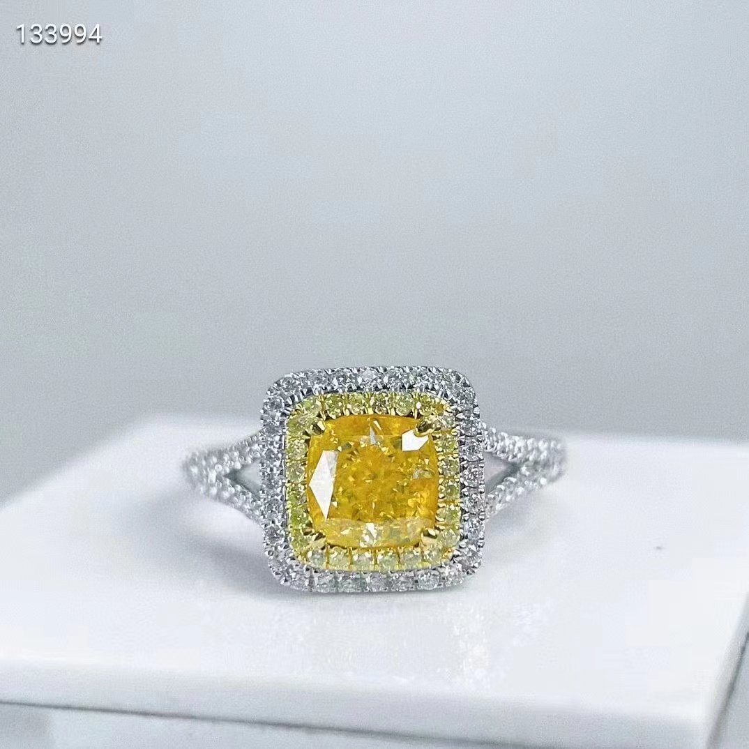 SGARIT Fine Jewelry Factory 18k White Gold 1.221 Carats Cushion Cut VS Jewellery With GIA Certificates Classic Fancy Yellow Natural Diamond Ring.