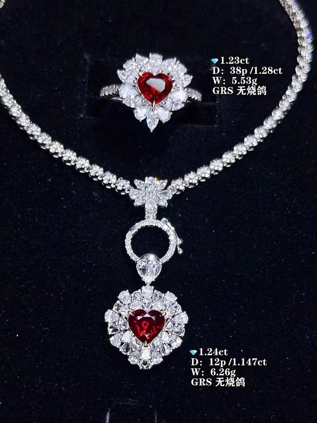 SGARIT Fine Jewelry Factory 18k White Gold 2.03 Carats Oval Cut VVS Jewellery With International Authority Certificate Classic Red ruby Natural Gemstone Three piece set.