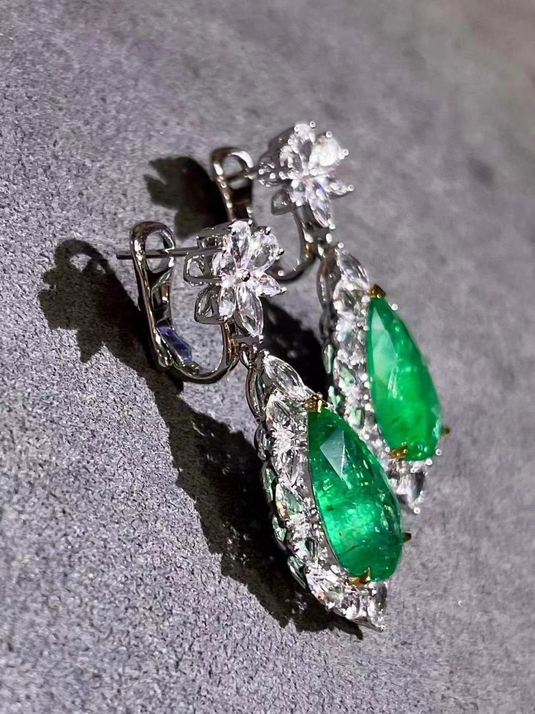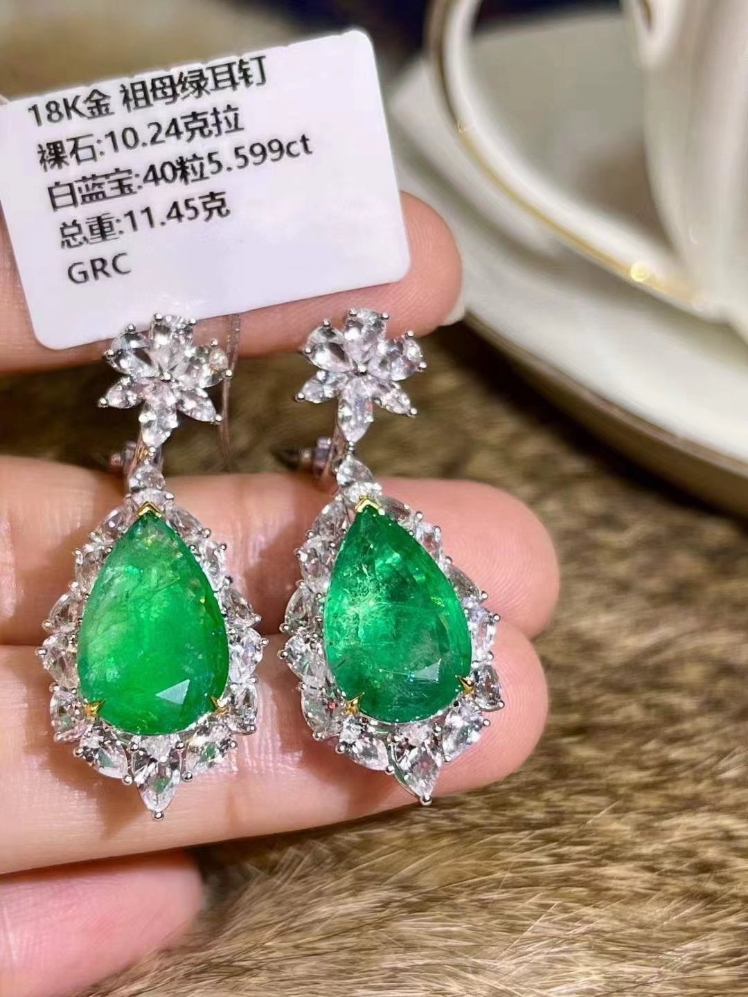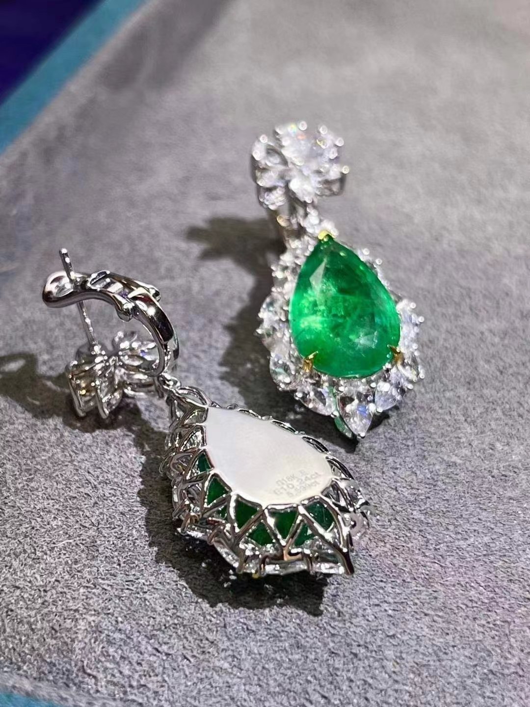 SGARIT Fine Jewelry Factory 18k White Gold 10.24 Carats Pear Cut VVS Jewellery GRA Engagement Wedding Gift Luxury style emerald Natural Gemstone earrings.